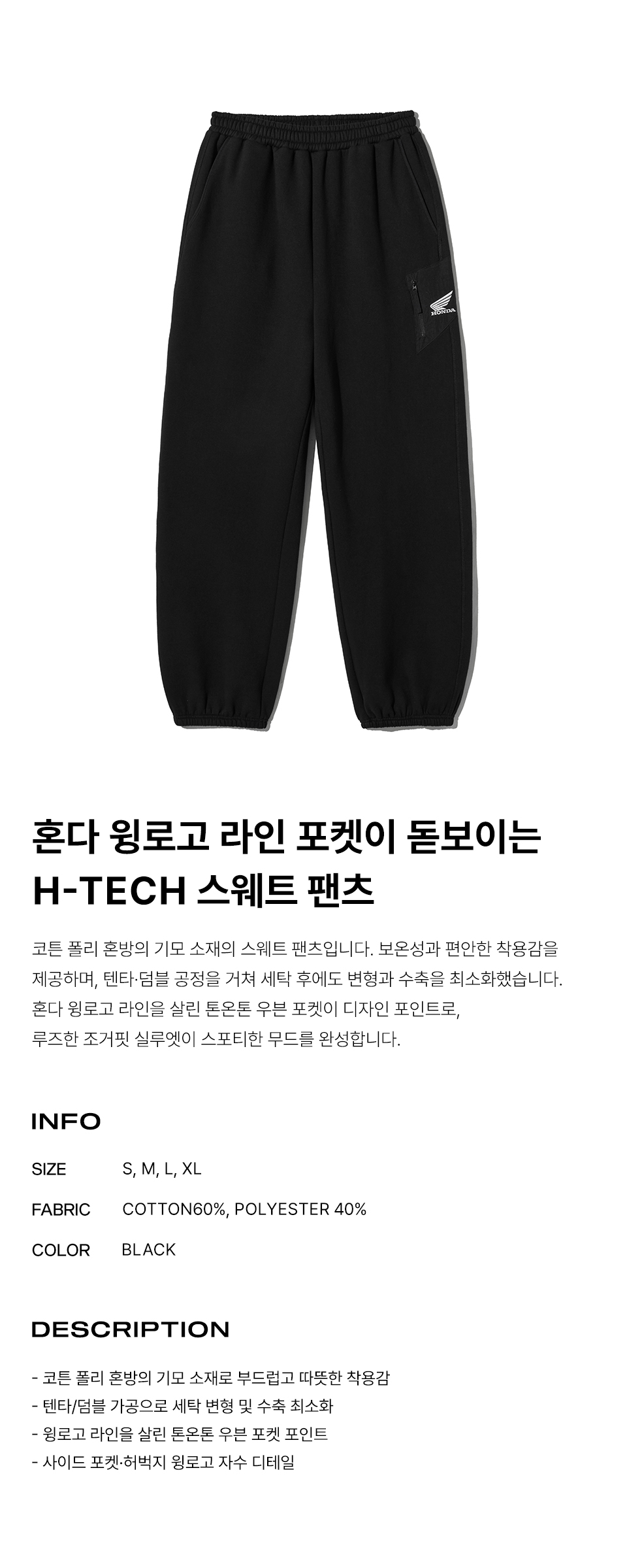 혼다 H-Tech 컬러 블록 스웨트 팬츠 블랙