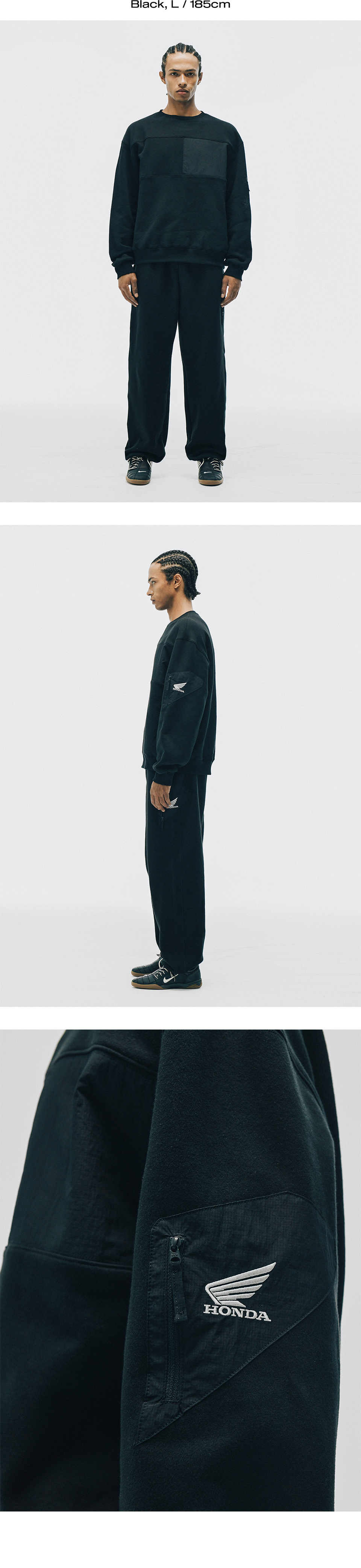 혼다 H-Tech 컬러 블록 크루넥 블랙