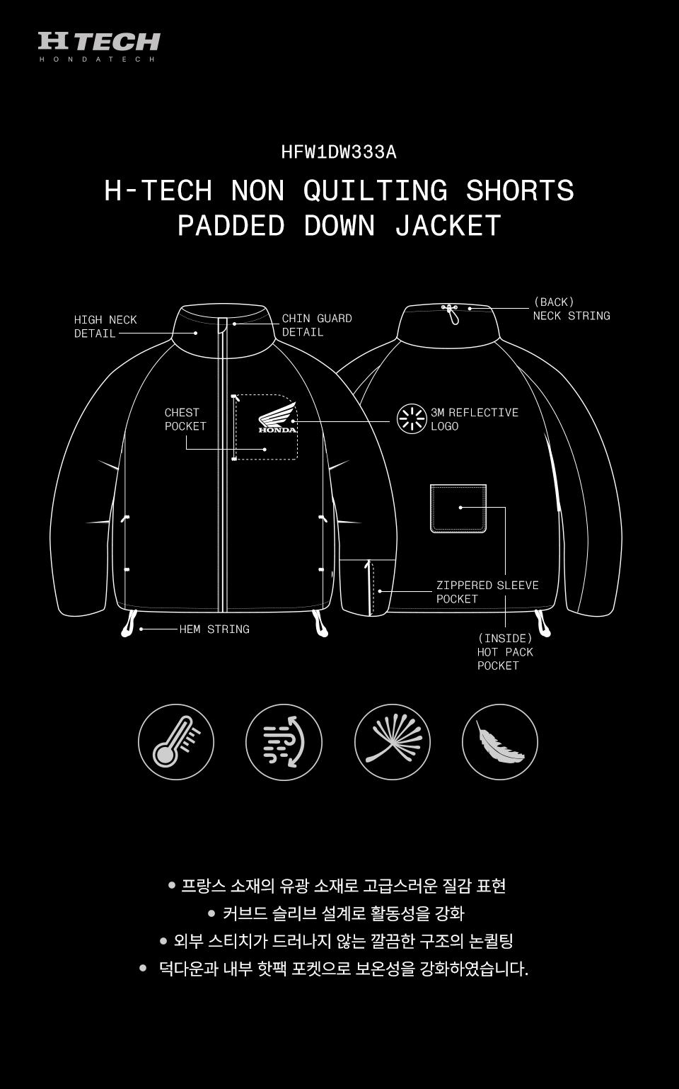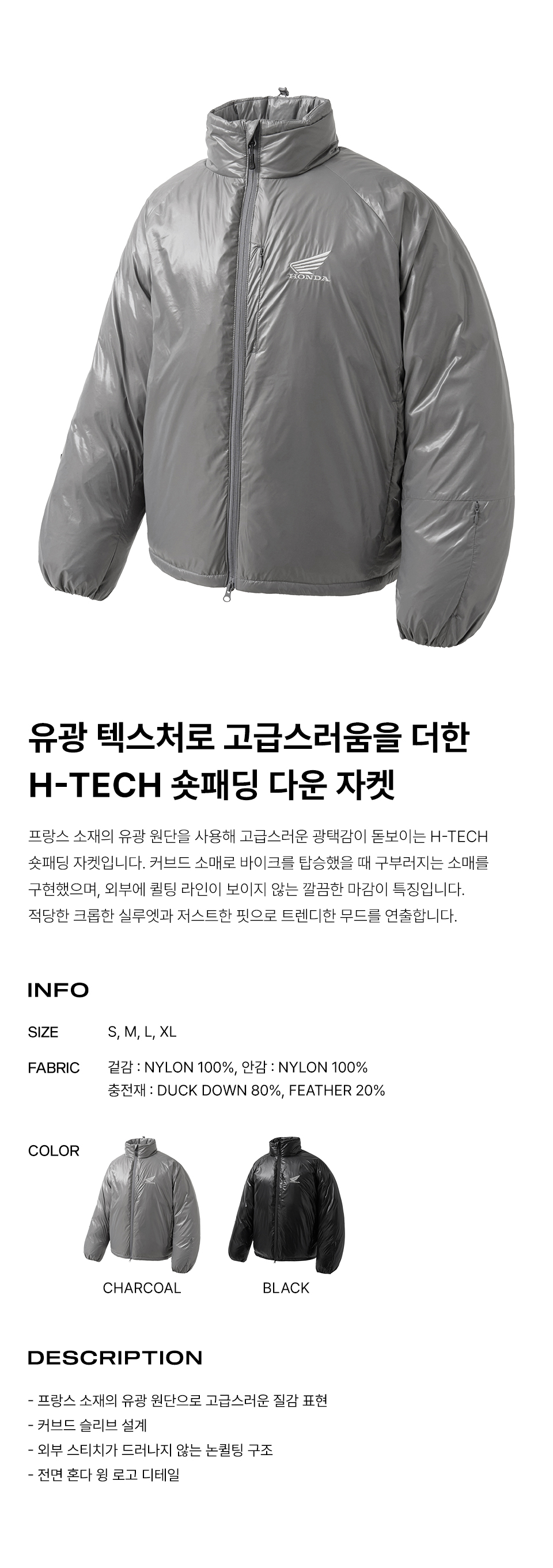 혼다 H-Tech 논퀄팅 숏 패딩 자켓 차콜
