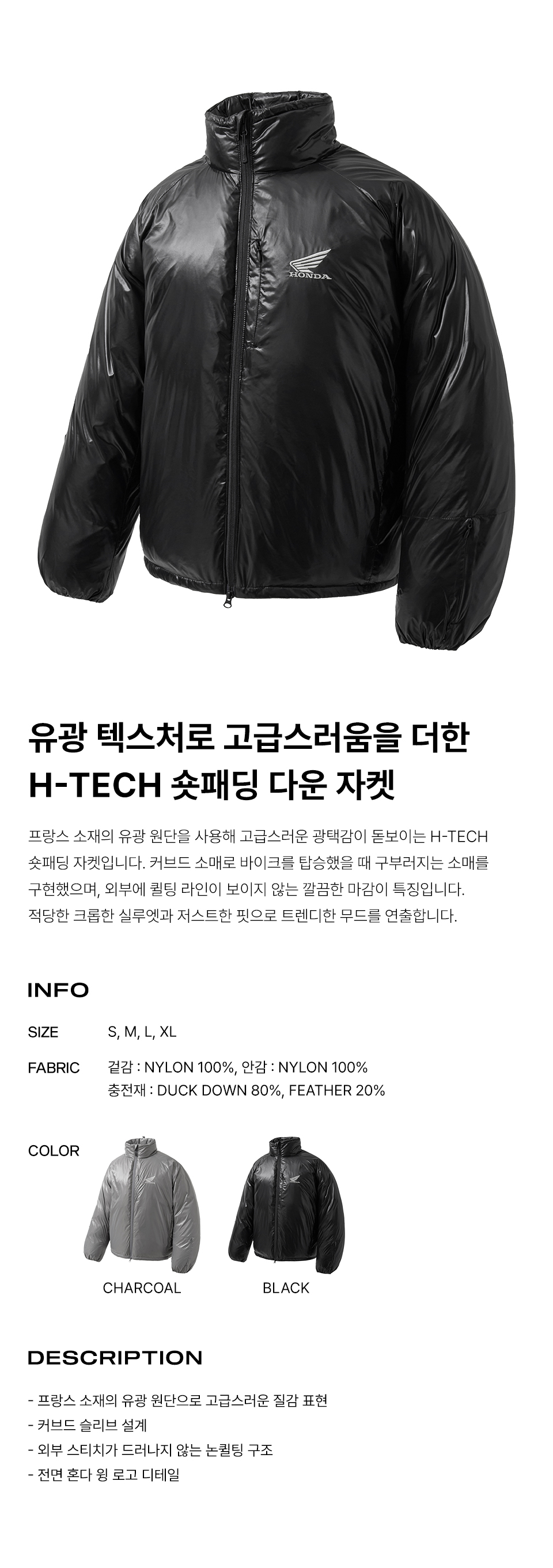 혼다 H-Tech 논퀄팅 숏 패딩 자켓 블랙