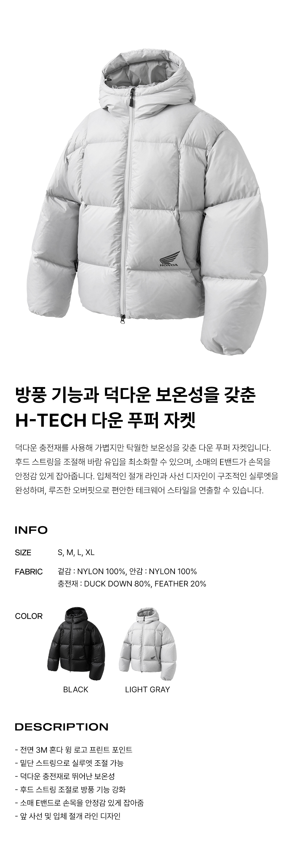 혼다 H-Tech 디멘셔널 다운 푸퍼 자켓 라이트 그레이