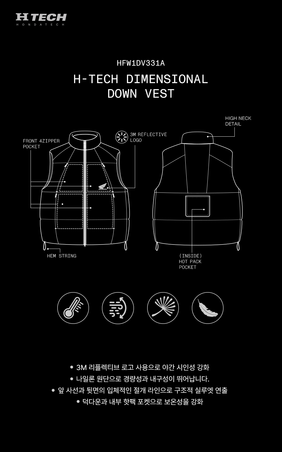 혼다 H-Tech 디멘셔널 다운 베스트 블랙