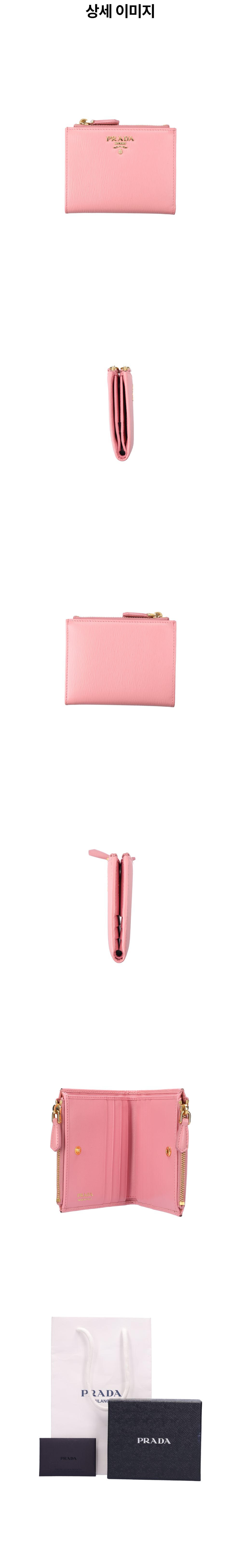 프라다 1ML024 비텔로 반지갑 사피아노 카프스킨 핑크 금장