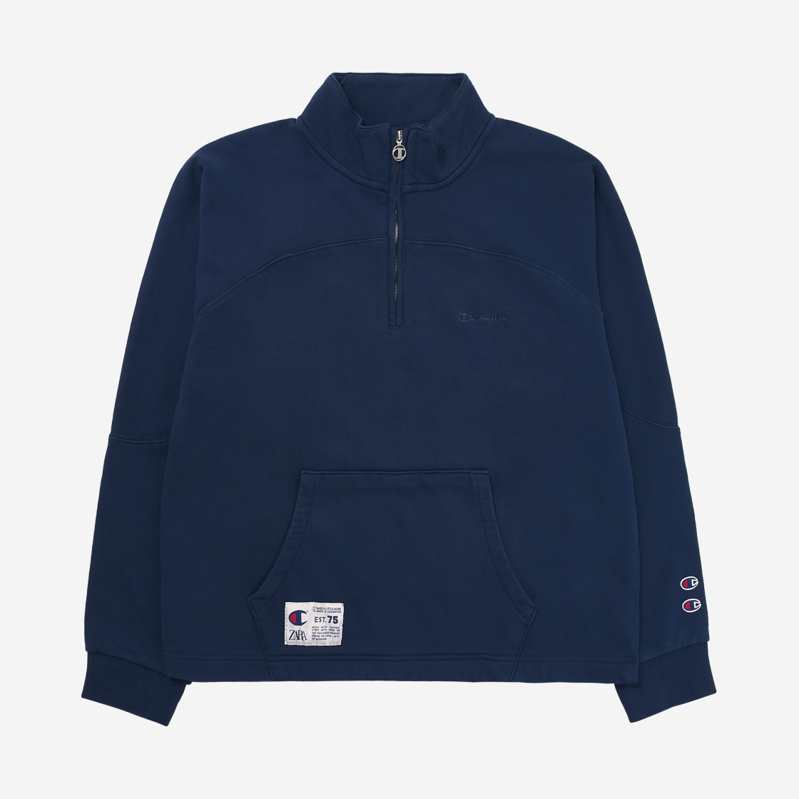 자라 x 챔피온 쿼터집 스웨트셔츠 네이비 블루