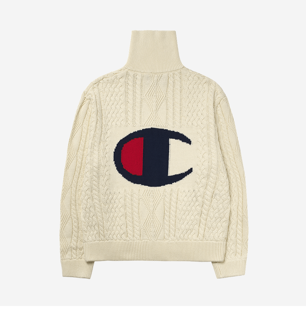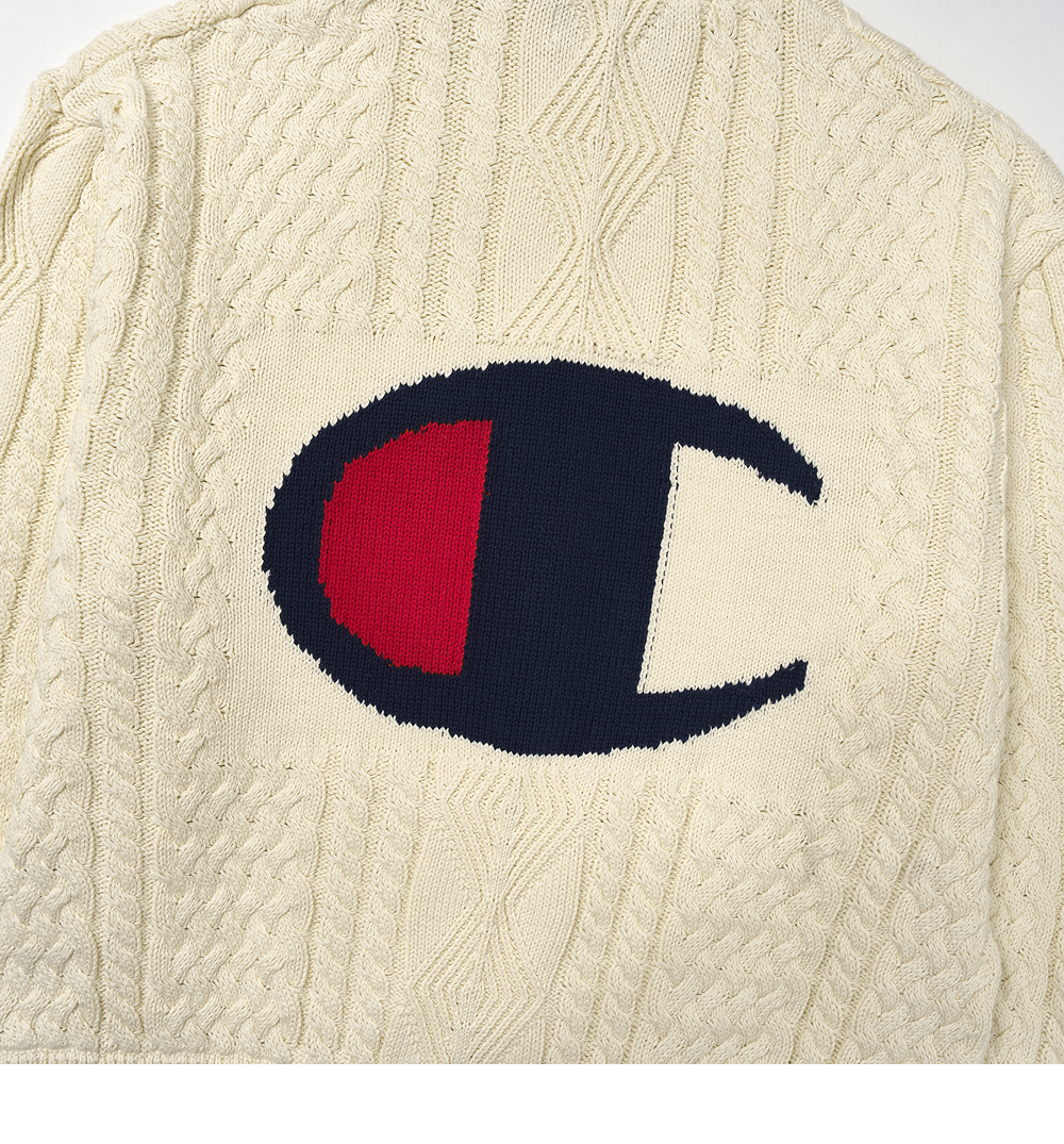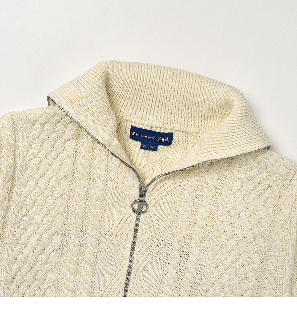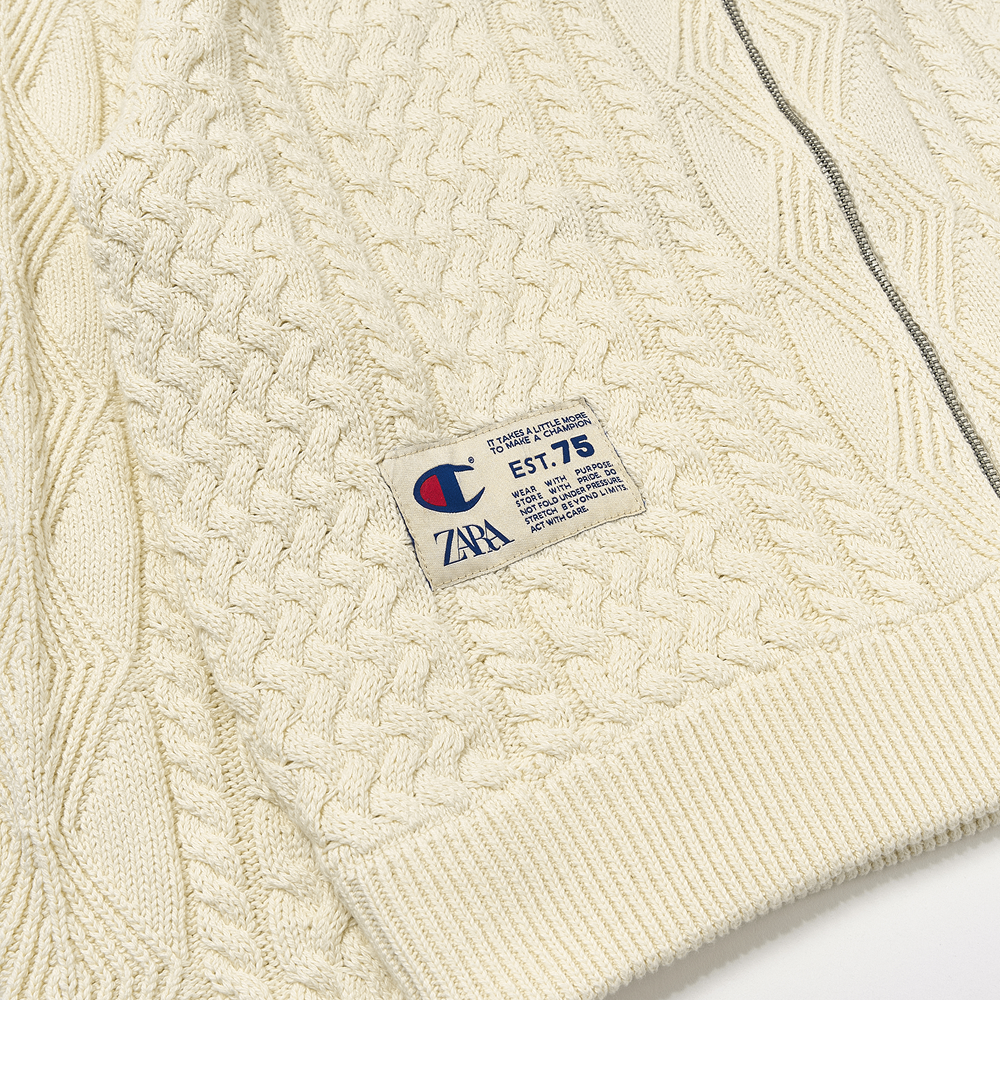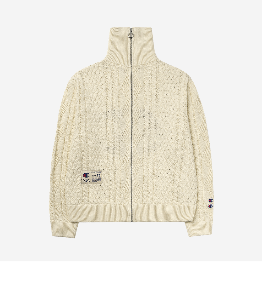 Zara x Champion Jacquard Cable Knit Cardigan Ecru
