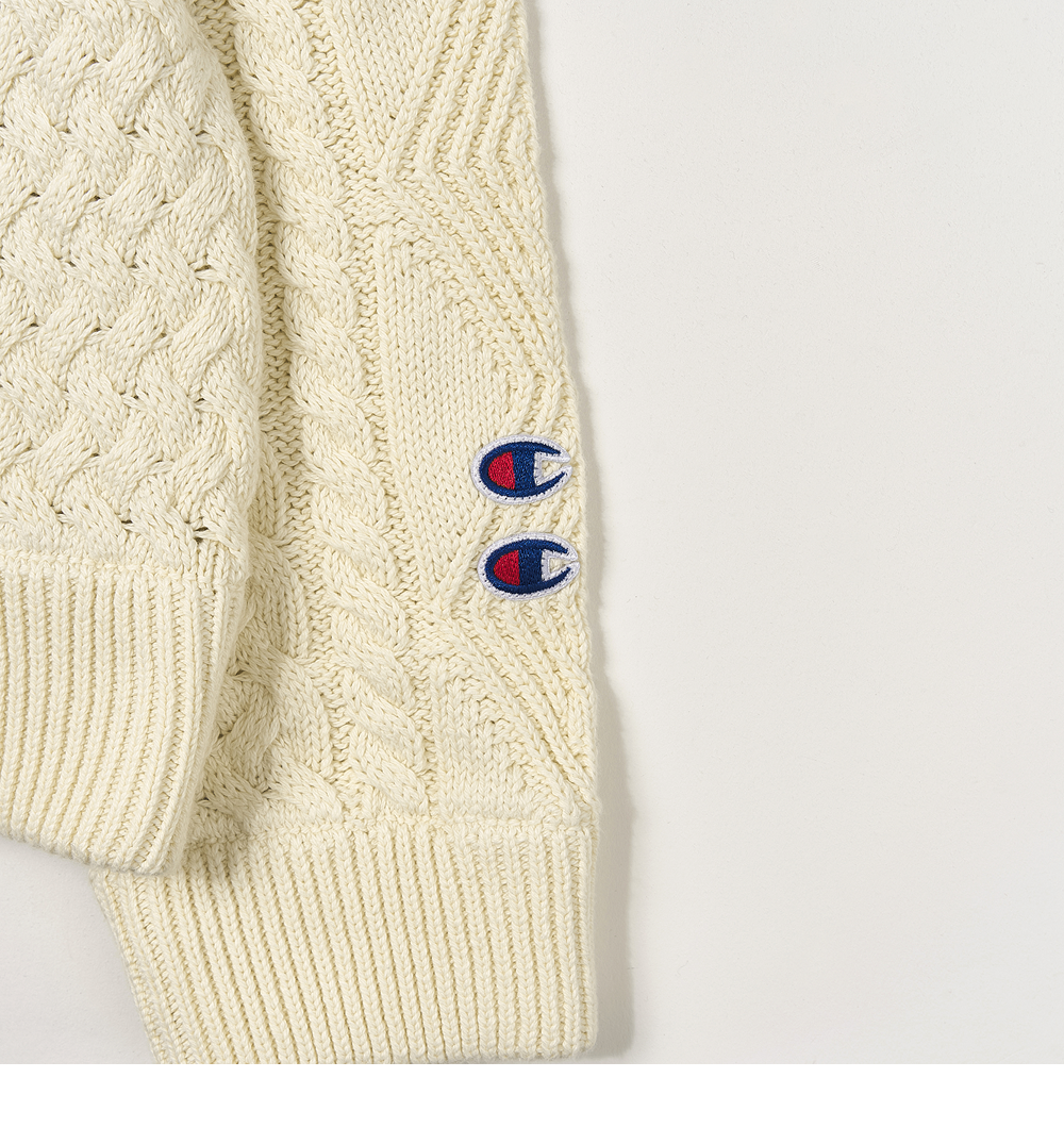 자라 x 챔피온 자카드 케이블 니트 가디건 에크루