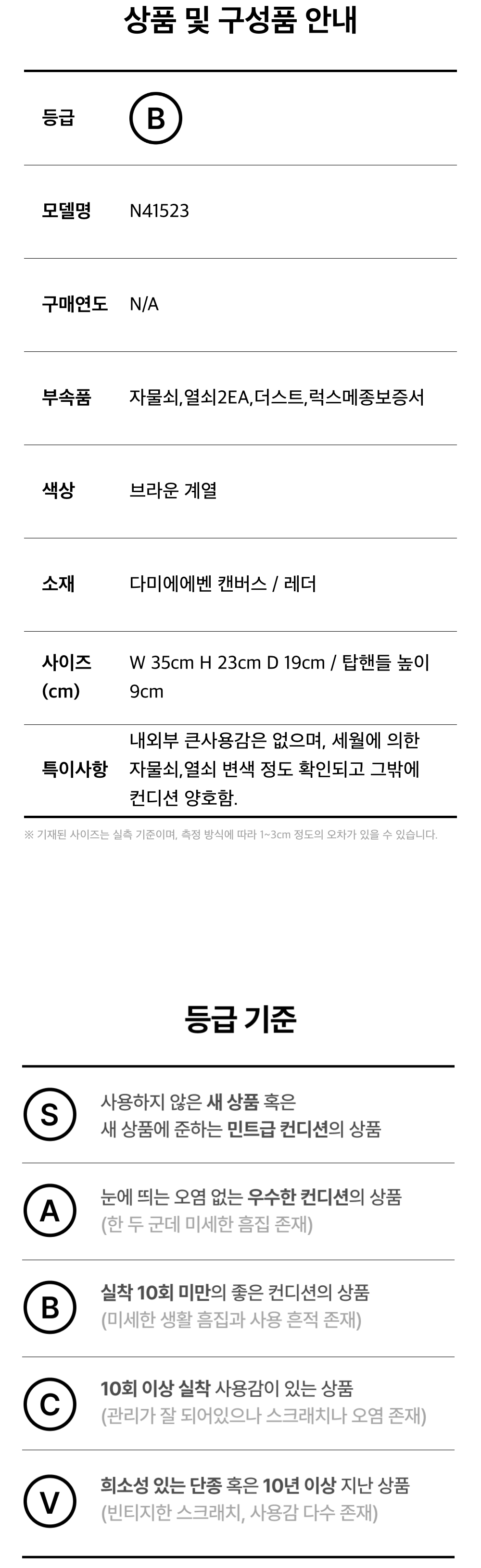 루이비통 N41523 다미에 에벤 캔버스 스피디 35 토트백