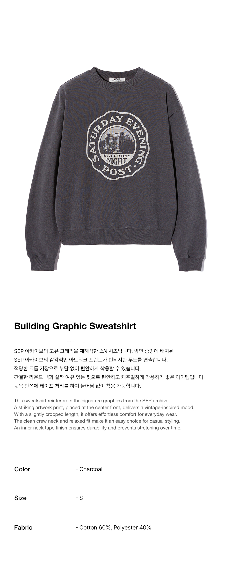 더 새터데이 이브닝 포스트 빌딩 그래픽 스웨트셔츠 차콜