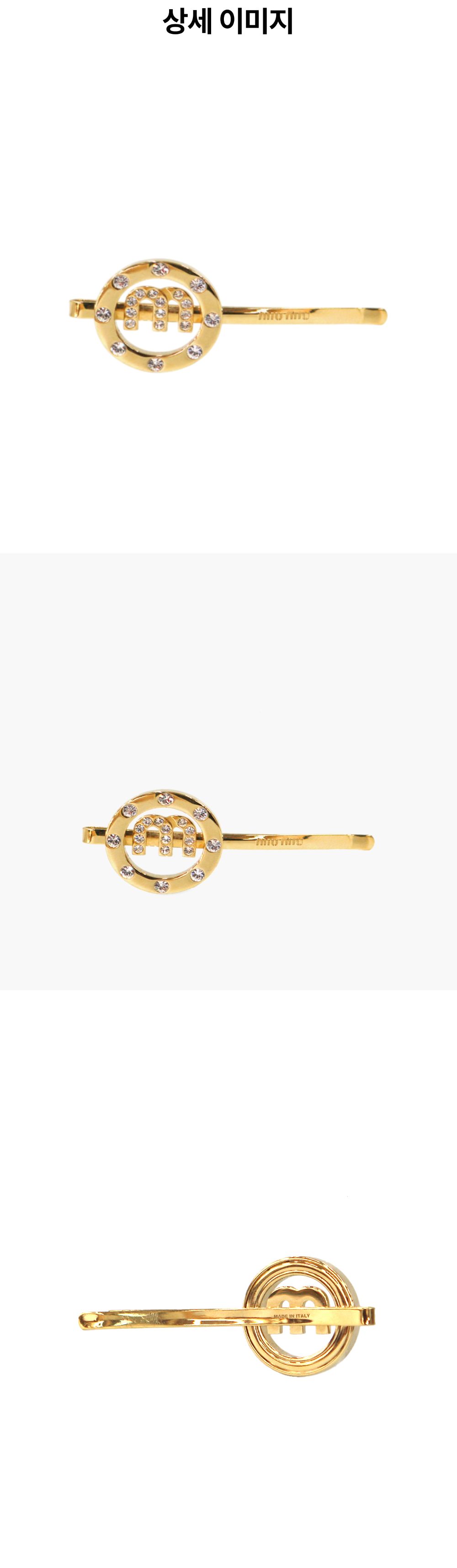 미우미우 큐빅 M 펜던트 골드 헤어핀 A-B31257