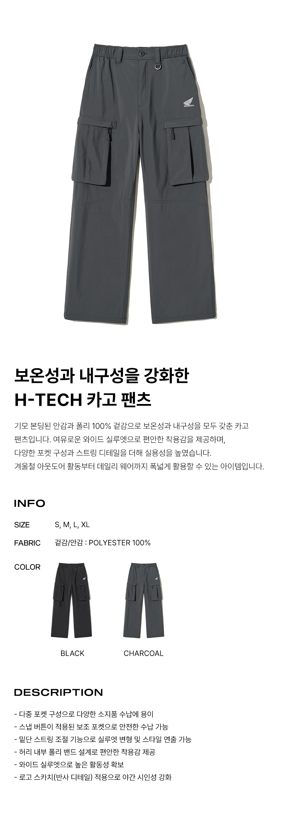 혼다 Hot-Tech 카고 팬츠 차콜