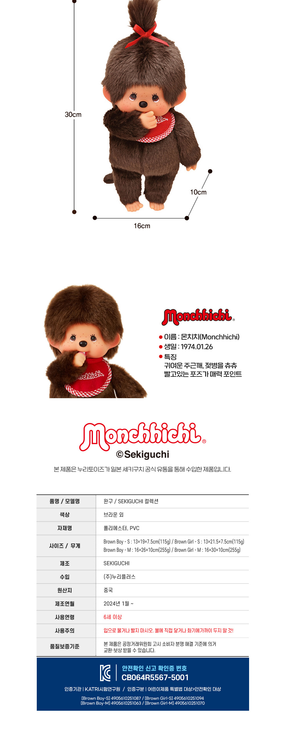 Monchhichi Premium Standard S Brown Boy