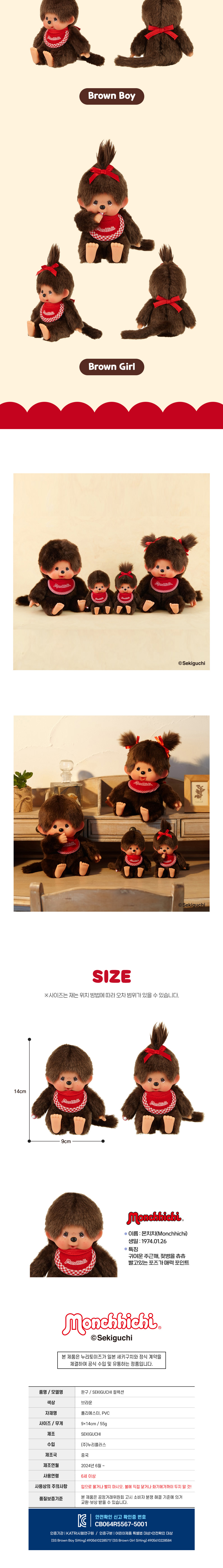 Monchhichi Premium Standard SS Brown Girl Sitting