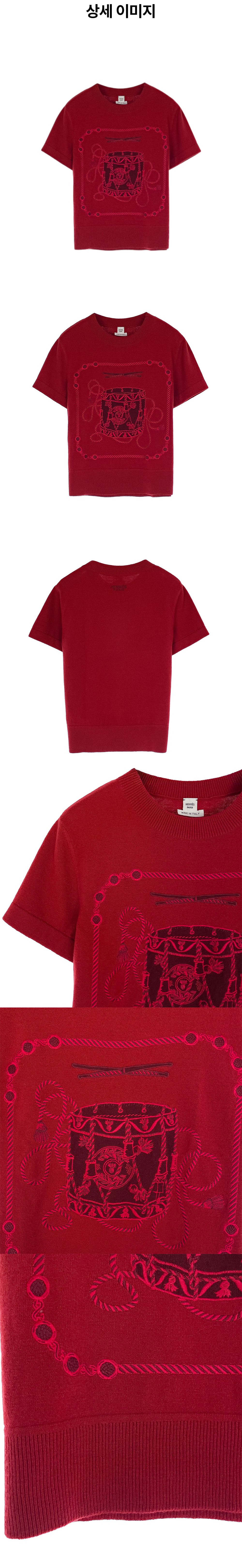 에르메스 레 땅부르 자수 숏슬리브 스웨터 38 루즈 퓨(5HA1034)