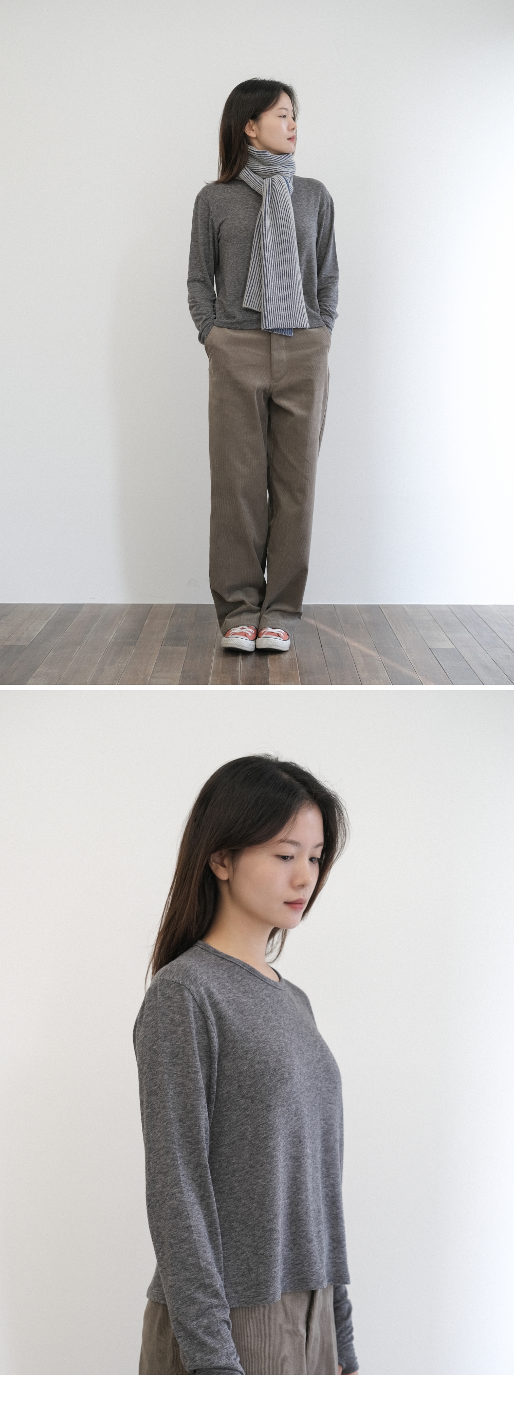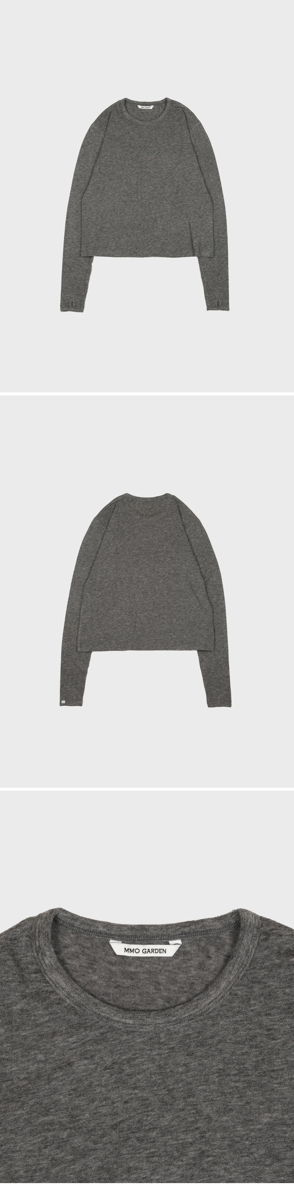 에메모가든 우먼 핑거홀 롱 슬리브 티 멜란지 차콜