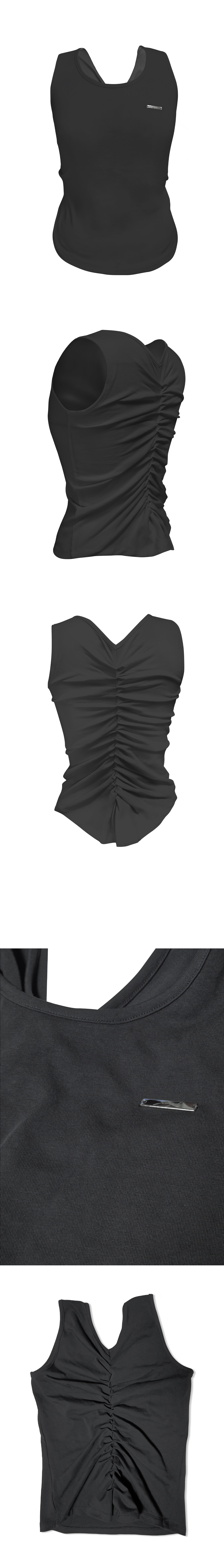 백 위브 슬리브리스 - 슬림 핏 슬리브리스 - 뒷면 게더 셔링 디테일 - 전면 시그니처 각인 라벨 - 신축성 있는 코튼 소재 사용 - 뒷면 밑단 입체적 훌 디테일