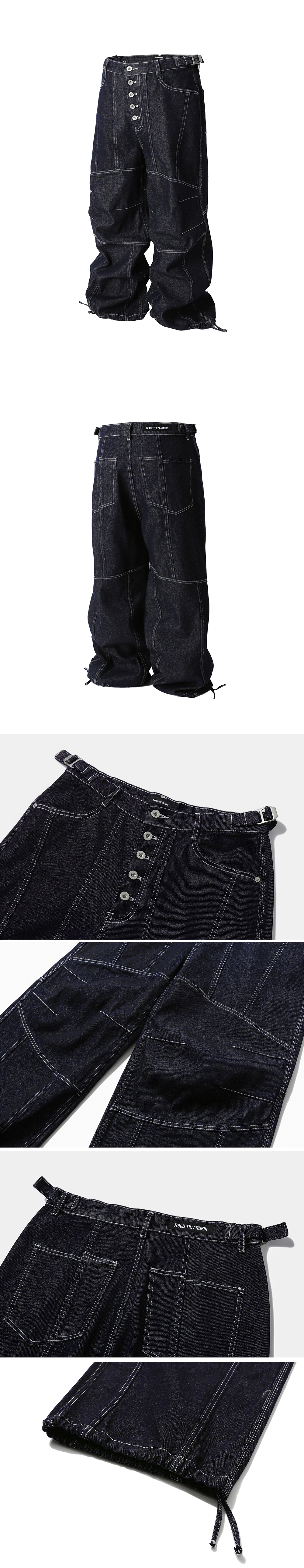 Fabric : 100% Cotton - 와이드 핏 - 전, 후면 절개 및 다트 포인트 - 허리 조절 비조 - 밑단 조절 스트링 - 지퍼 YKK 社 • 제조국 : 대한민국 • 세탁 방법 : 단독 찬물 세탁 권장, 건조기 사용 금지 Size Spec (CM) M : 허리 41, 허벅 35, 밑위 35, 엉덩이 56, 밑단 31, 총장 112 L : 허리 44, 허벅 37, 밑위 36, 엉덩이 58, 밑단 32, 총장 114