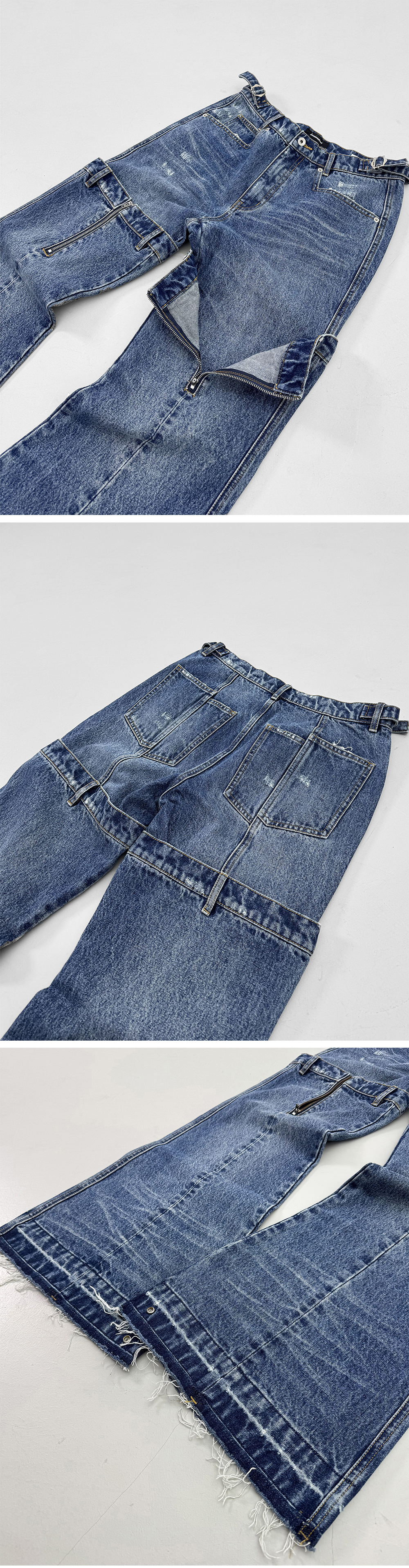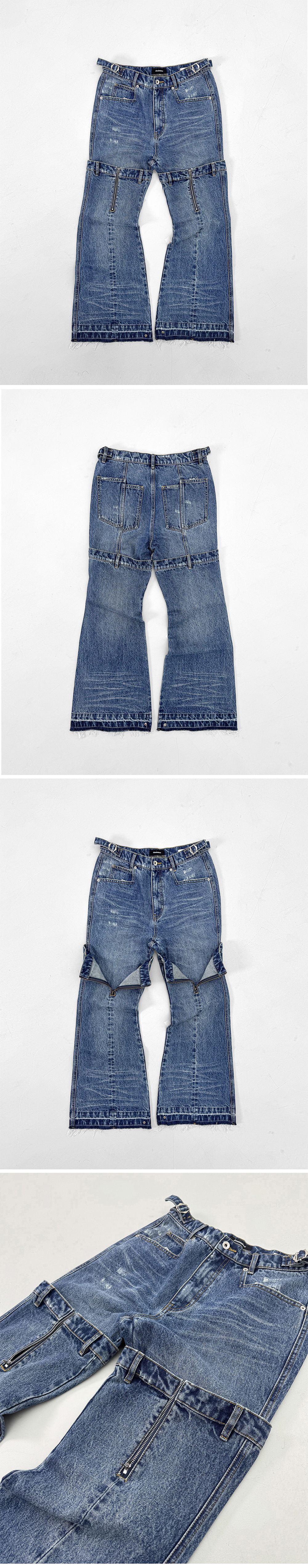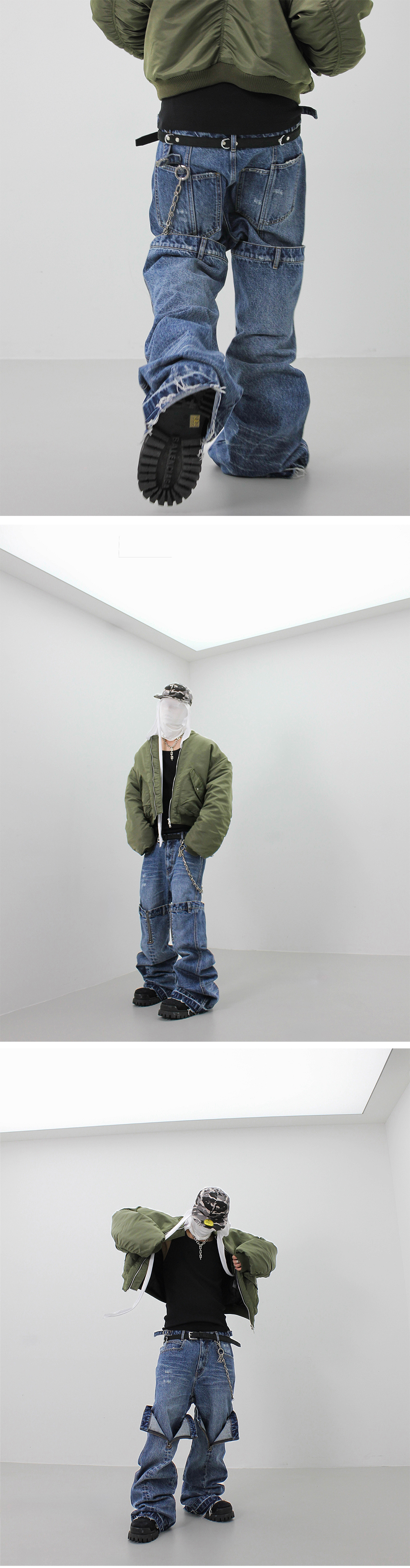 Fabric : 100% Cotton - 플레어 핏 - 무릎 오비 디테일 - 디스트로이드 및 캣 주름 워싱 - 허리 조절 비조 - 밑단 조절 스냅 - 지퍼 YKK 社 • 제조국 : 대한민국 • 세탁 방법 : 찬물 세탁 권장, 건조기 사용 금지 • 워싱 공정 특성상, 사이즈 및 개체 차이가 있을 수 있습니다. Size Spec (CM) M : 허리 41, 허벅 30, 밑위 33, 엉덩이 50, 밑단 32, 총장 115 L : 허리 44, 허벅 32, 밑위 34, 엉덩이 52, 밑단 33, 총장 116