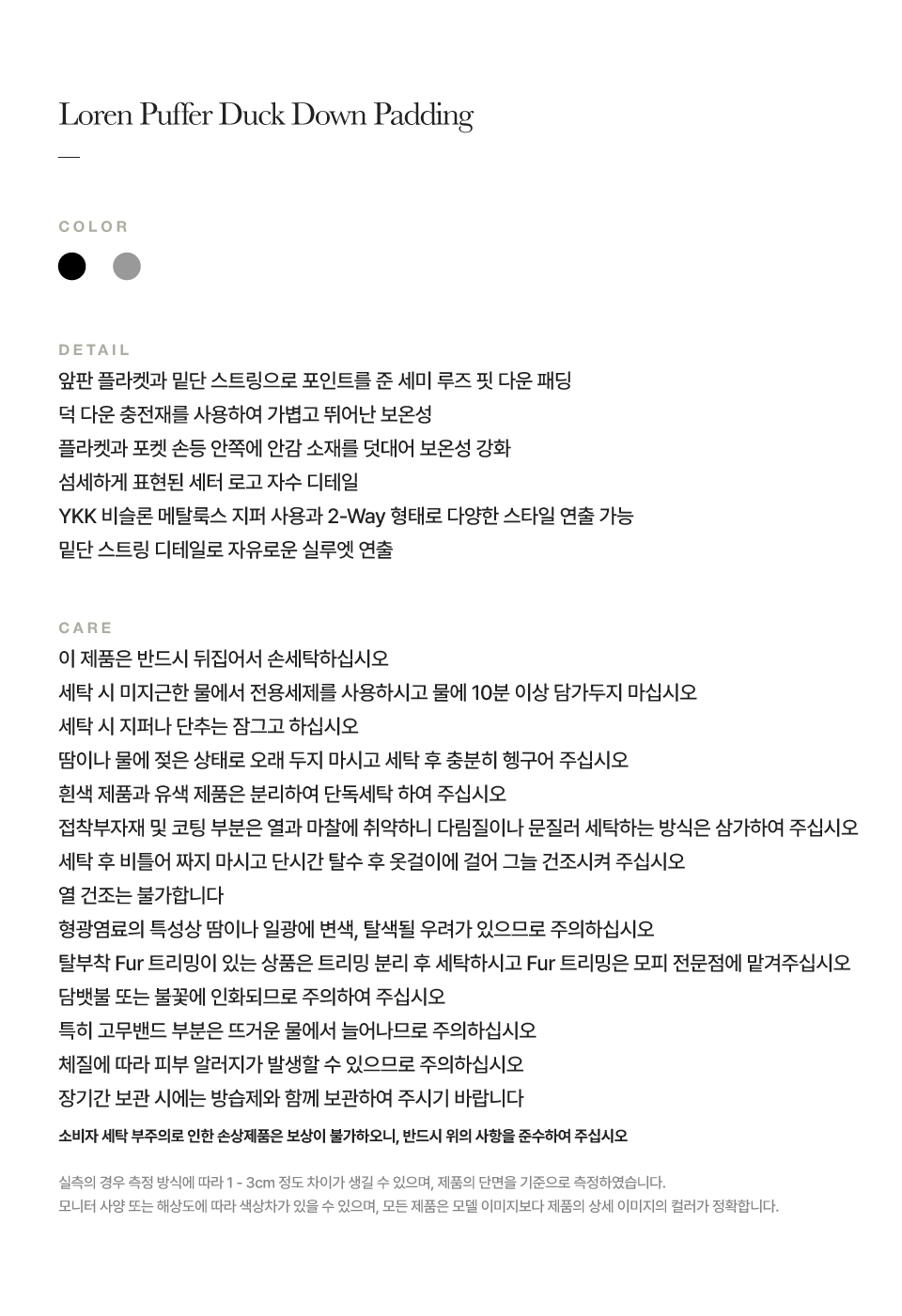 세터 로렌 푸퍼 덕 다운 패딩 그레이