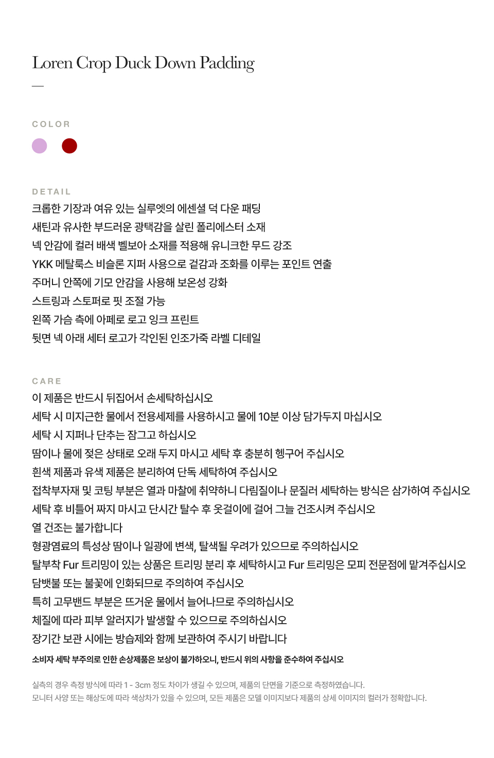 측정 방법에 따라 사이즈에 일부 오차가 있을 수 있습니다.