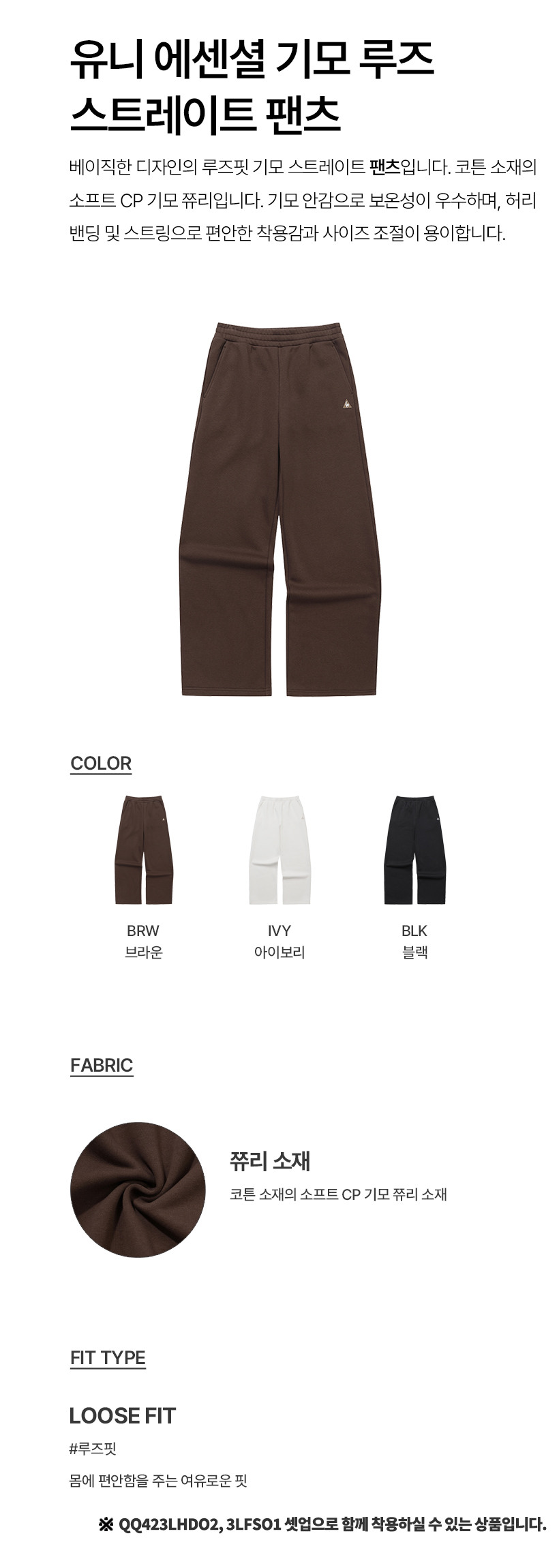 르꼬끄 스포르티브 유니 기모 루즈핏 스트레이트 팬츠 - 아이보리 QQ423LFPO1