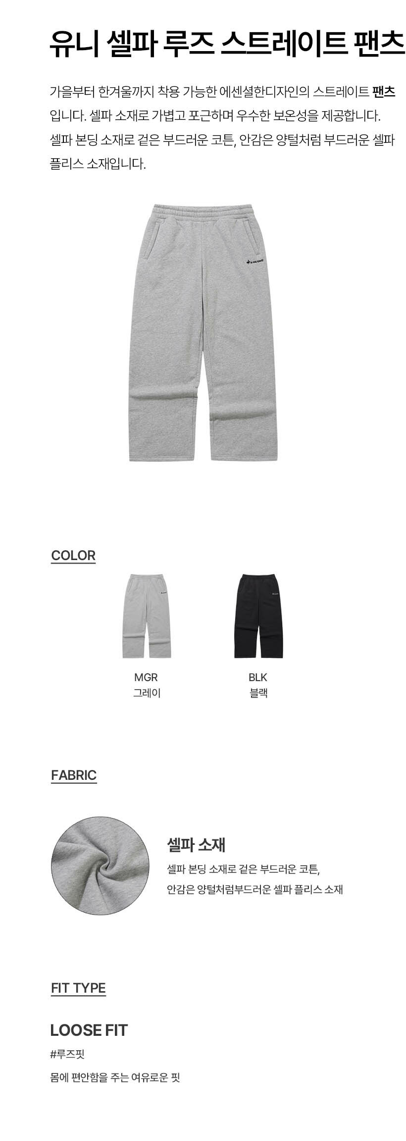 르꼬끄 스포르티브 유니 셸파 루즈핏 스트레이트 팬츠 - 블랙 QQ423LFPO4
