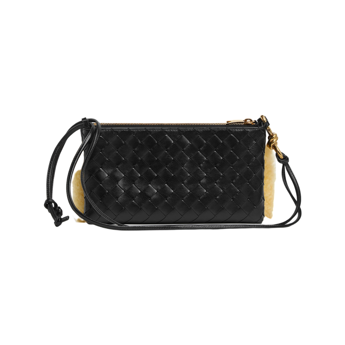 보테가 베네타 안디아모 더블 파우치 팝콘 블랙