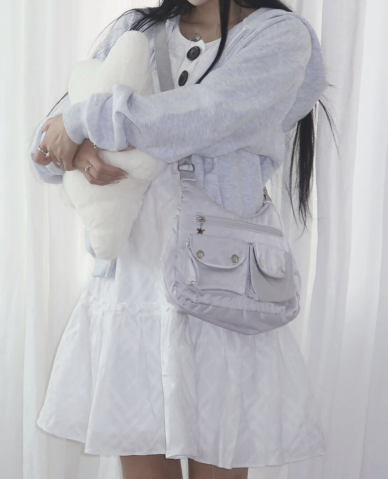 포근하고 가볍게 착용하기 좋은 데일리 백입니다. - 숄더백 또는 크로스백으로 다양하게 연출할 수 있어 실용적입니다. - 은은한 광택이 감도는 부드러운 폴리 원단 사용 - 실용적인 내부 수납공간 - 앞면 포켓으로 간편한 수납 가능