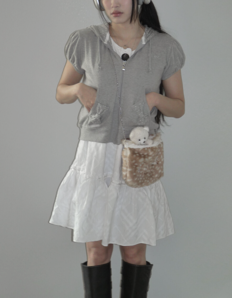 [KREAM 단독] 누옛 퍼프드 슬리브 도트 후디 그레이