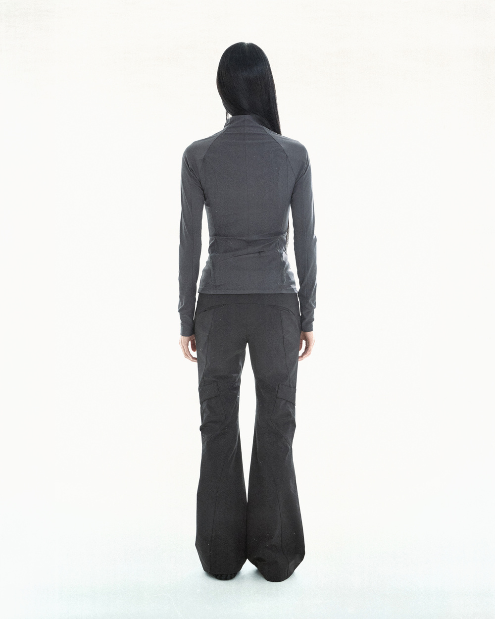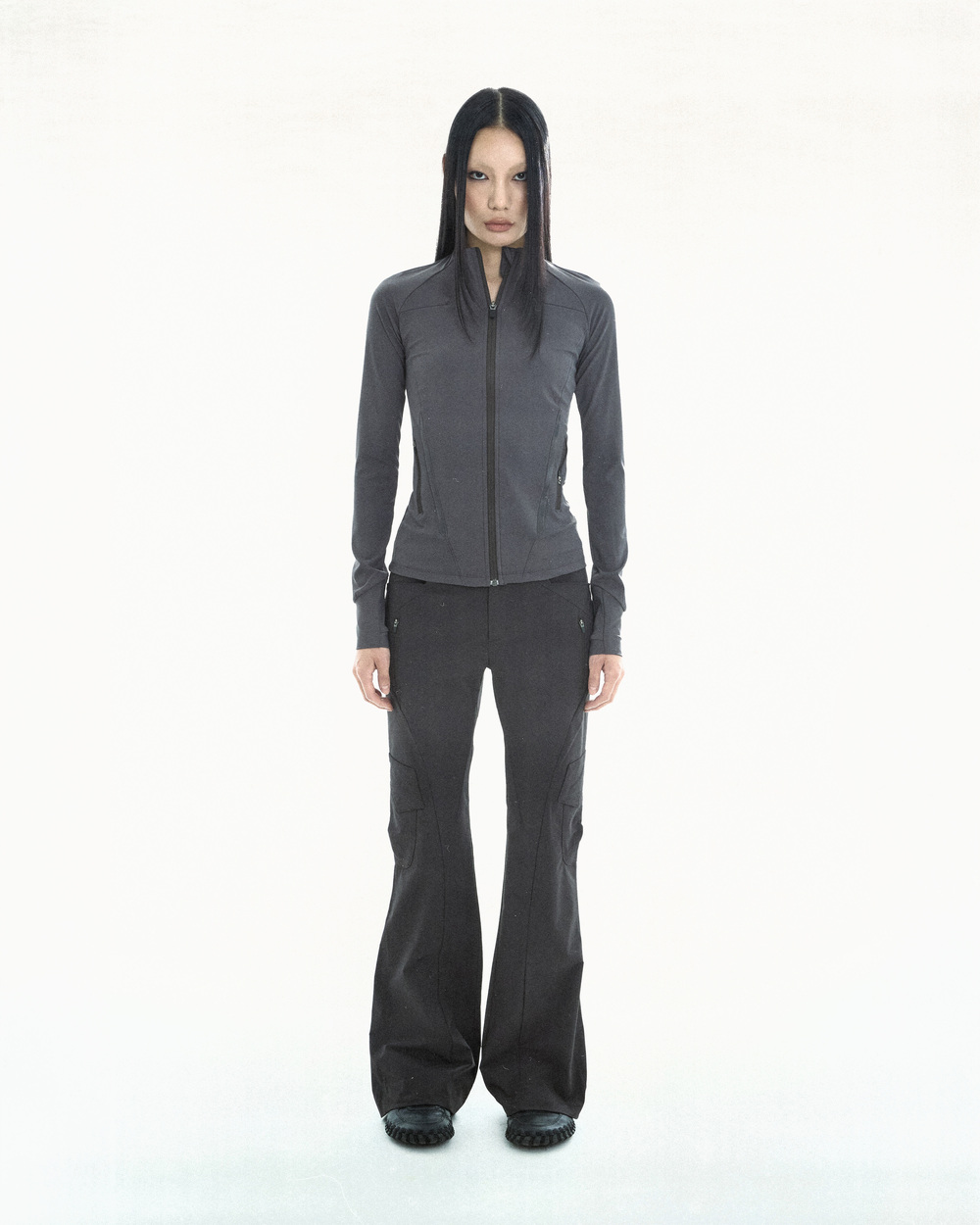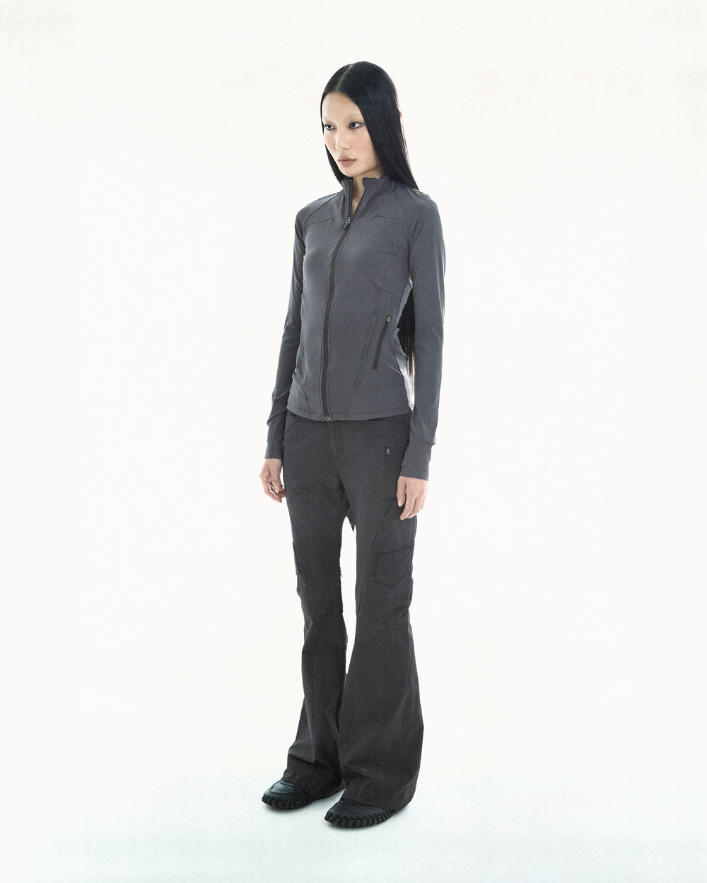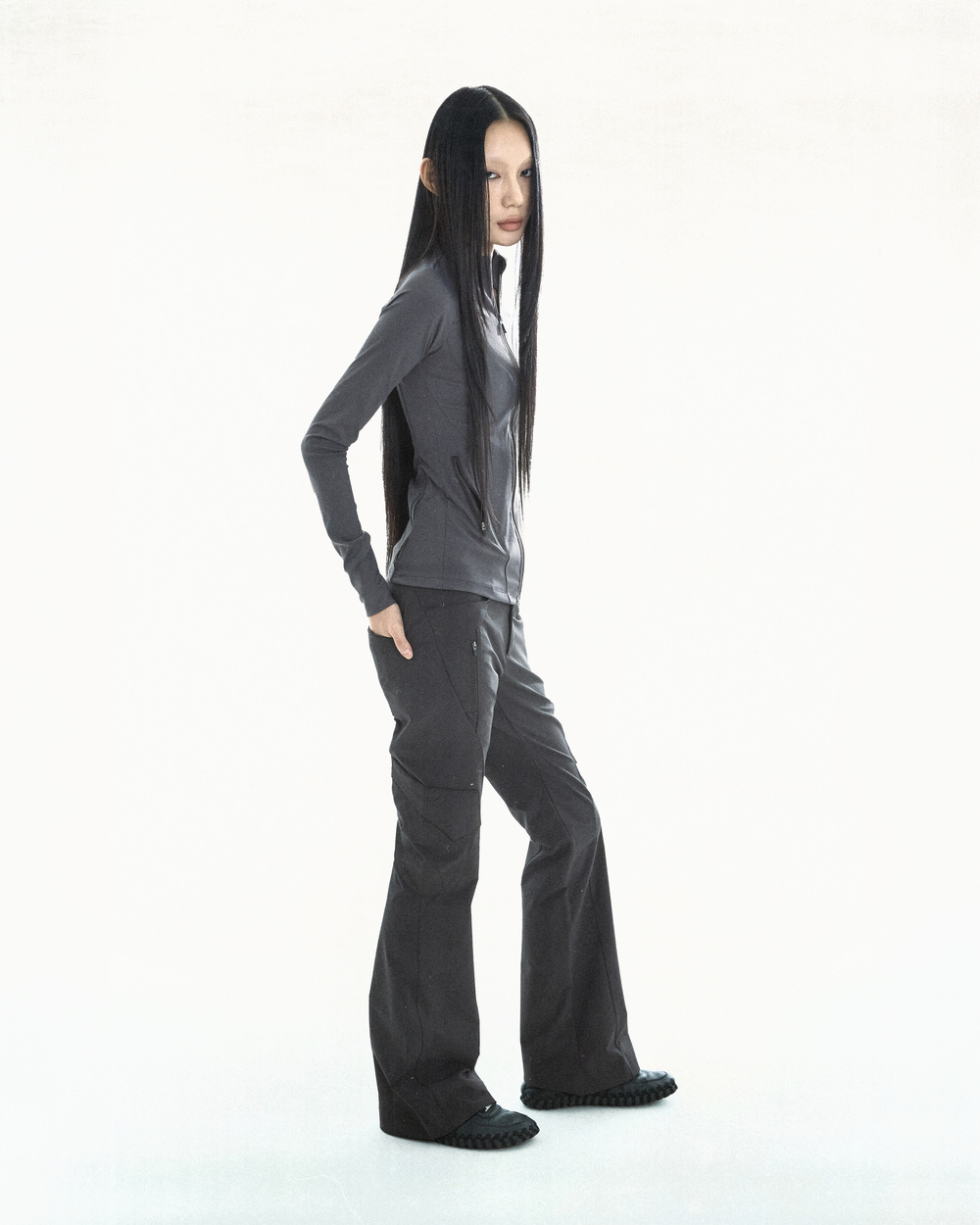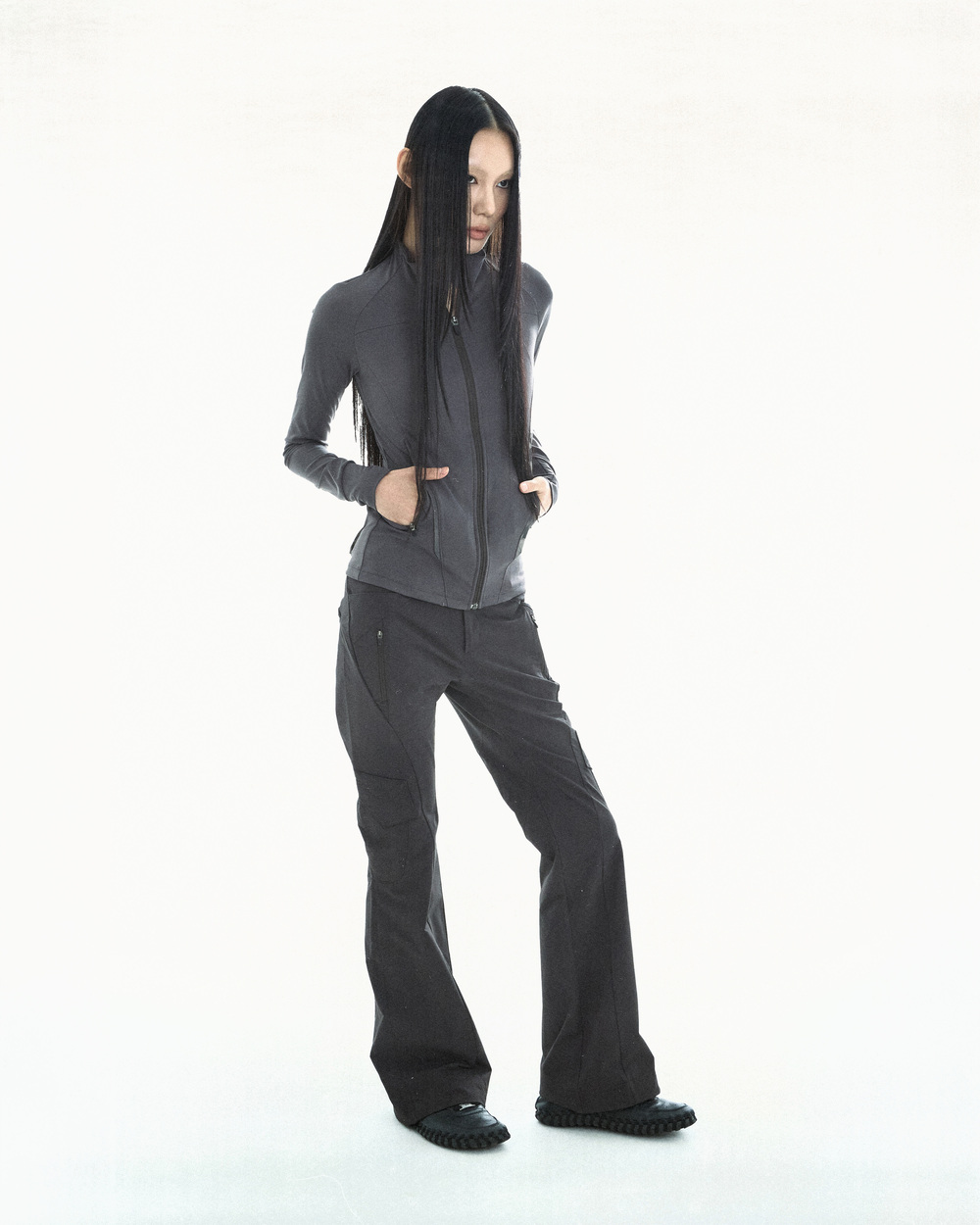 테크니컬 원단으로 활동성과 세련된 텍스처를 동시에 구현, 전·후면에 감열 및 리플렉티브 포인트 원단으로 디테일 강조, 백 히든 포켓으로 실용성 강화, 핑거홀더 디테일 적용