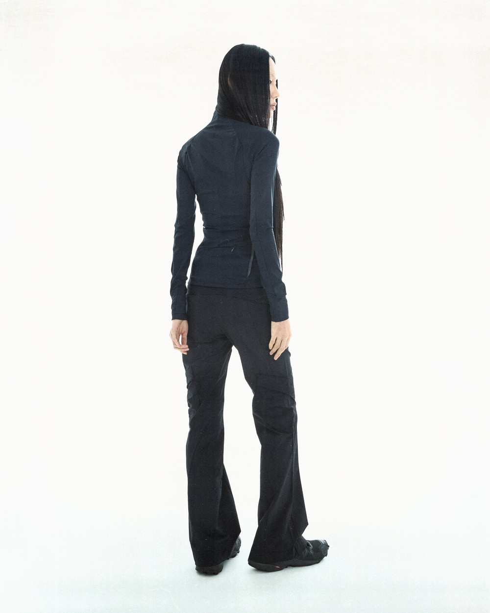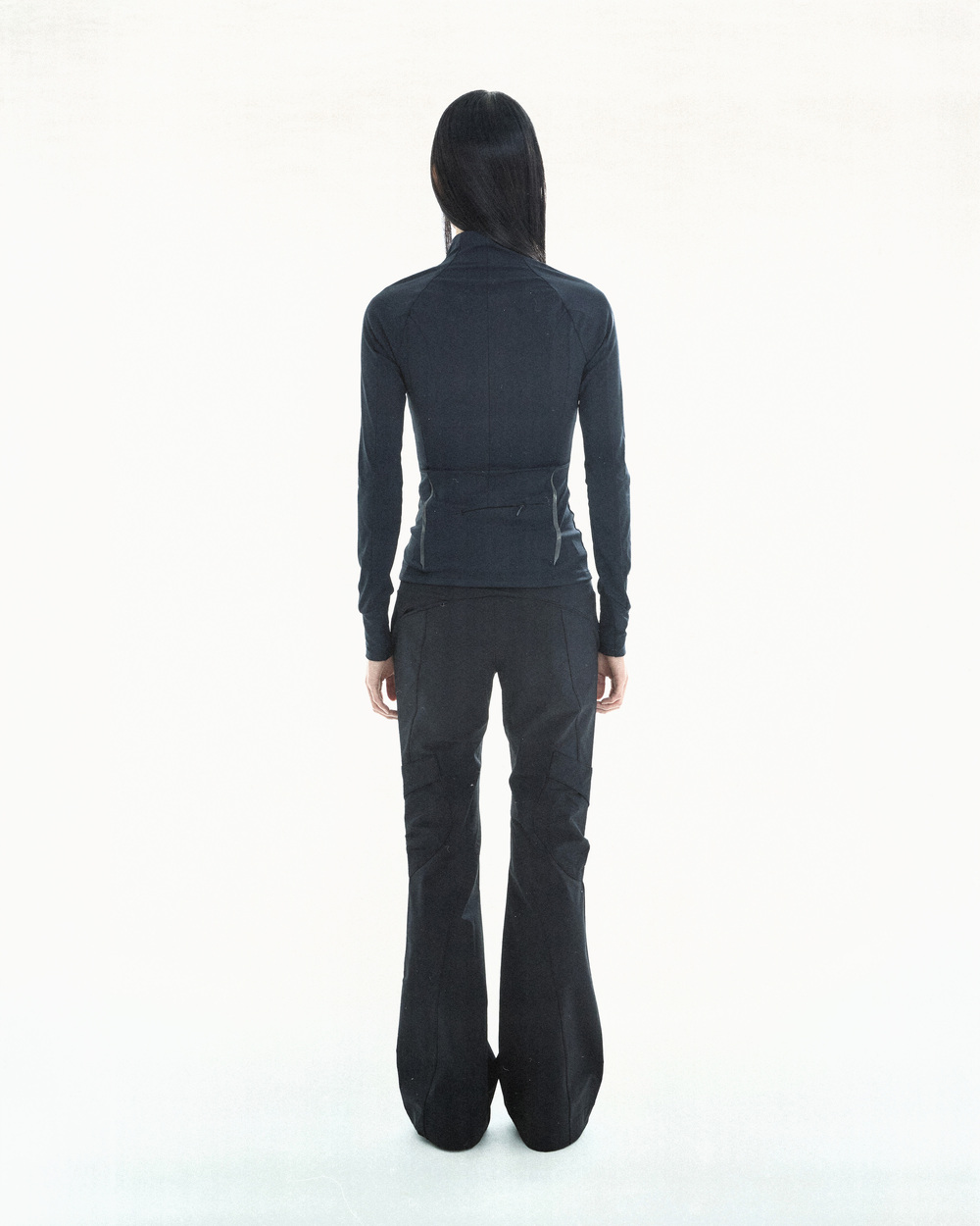 테크니컬 원단으로 활동성과 세련된 텍스처를 동시에 구현, 전·후면에 감열 및 리플렉티브 포인트 원단으로 디테일 강조, 백 히든 포켓으로 실용성 강화, 핑거홀더 디테일 적용