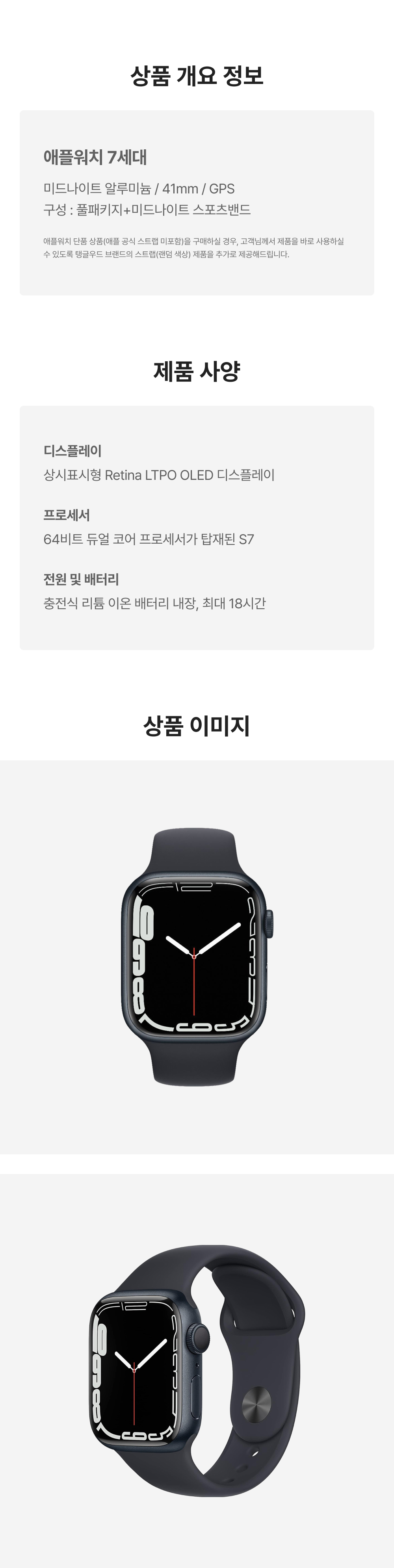 [A등급] 리퍼비시 애플워치 7 41mm GPS 미드나이트 알루미늄 케이스 스포츠 밴드 미드나이트