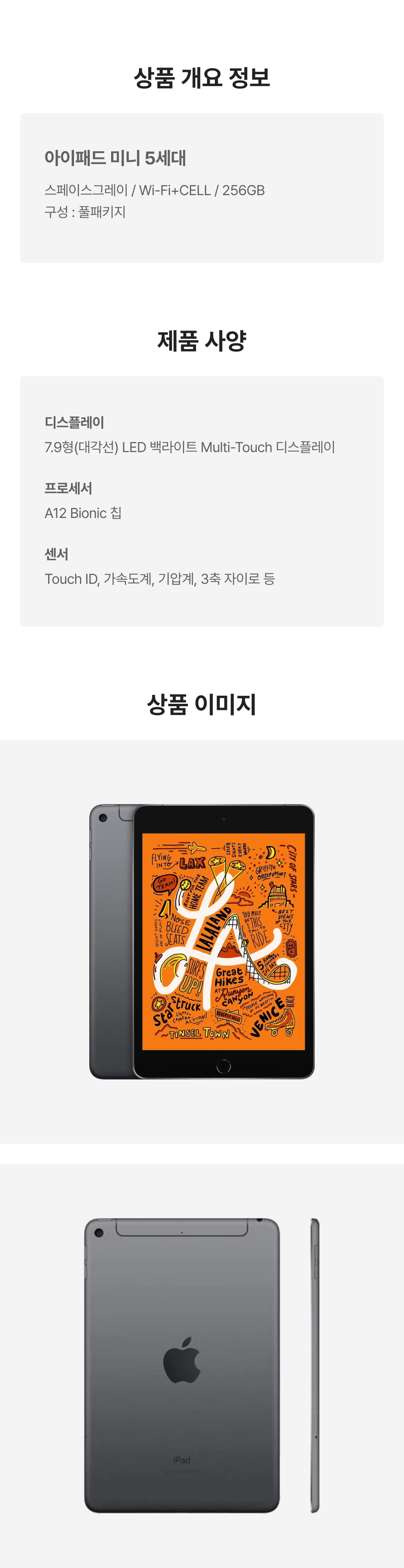 [A등급] 리퍼비시 아이패드 미니 5세대 wifi+cellular A12 Bionic 256기가 스페이스그레이