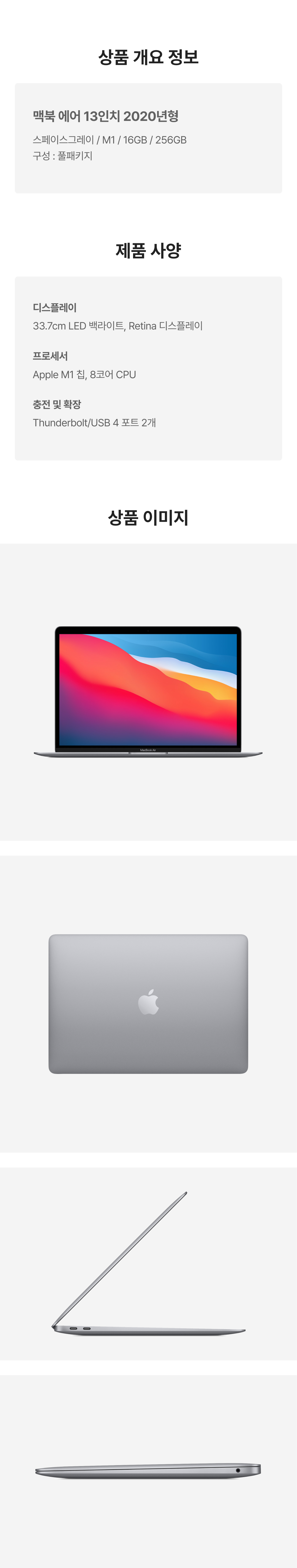 [S등급] 리퍼비시 2020 맥북 에어 13 M1 256기가 SSD 16기가 램 스페이스그레이