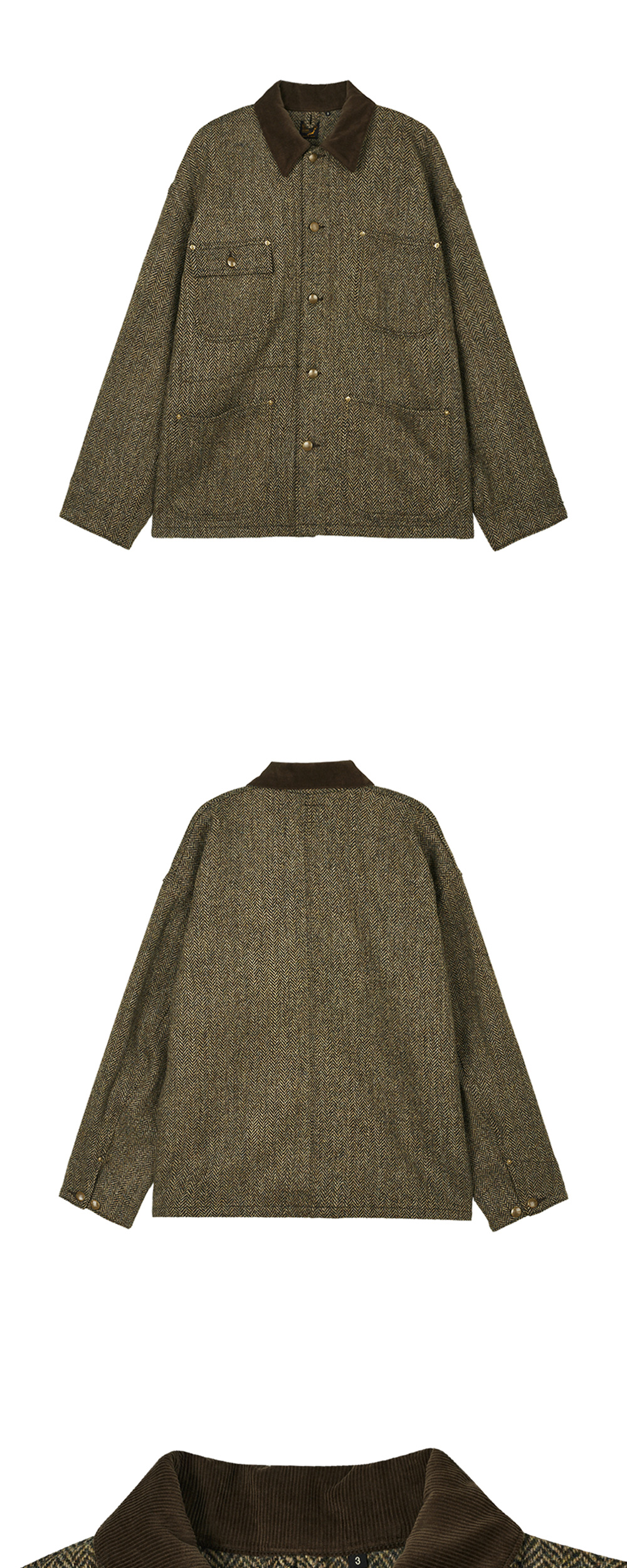 오어슬로우 해리스 트위드 릴렉스 핏 커버올 카키 - 25FW