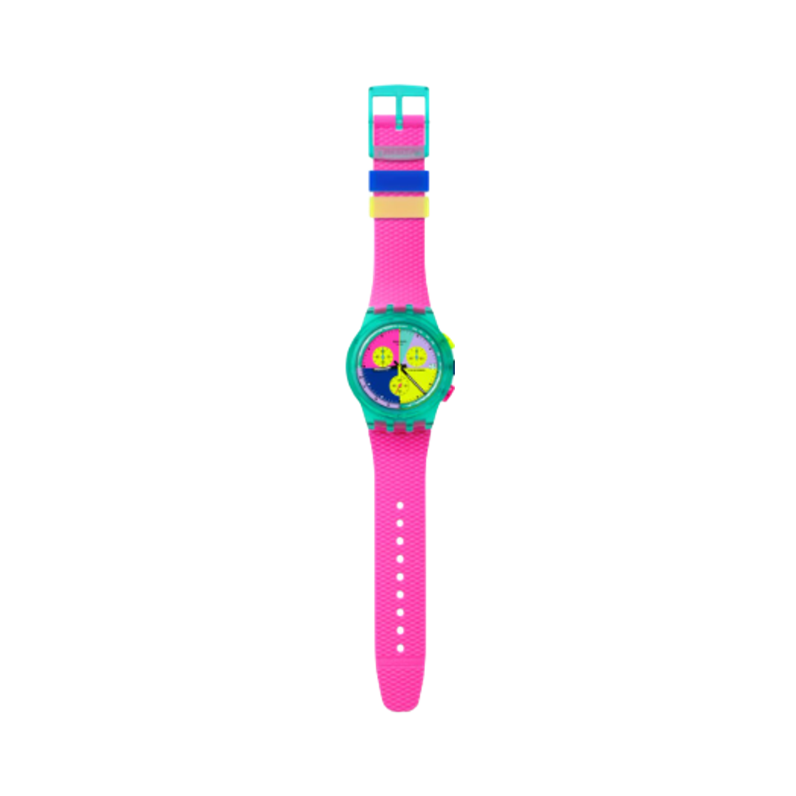 스와치 네온 플래시 애로우 42mm 쿼츠 핑크