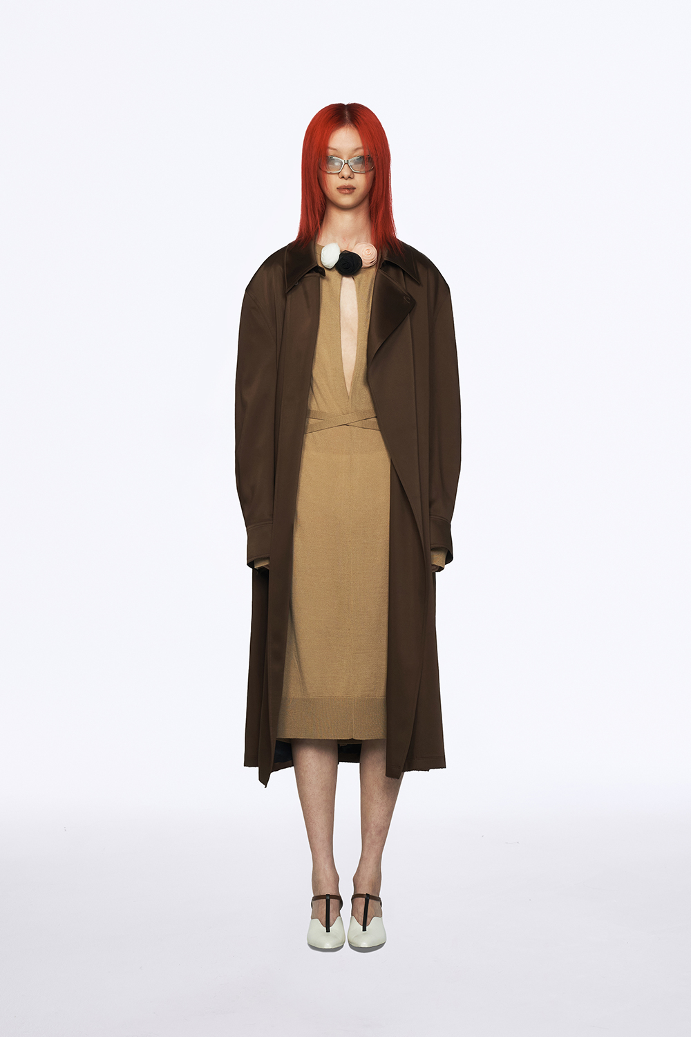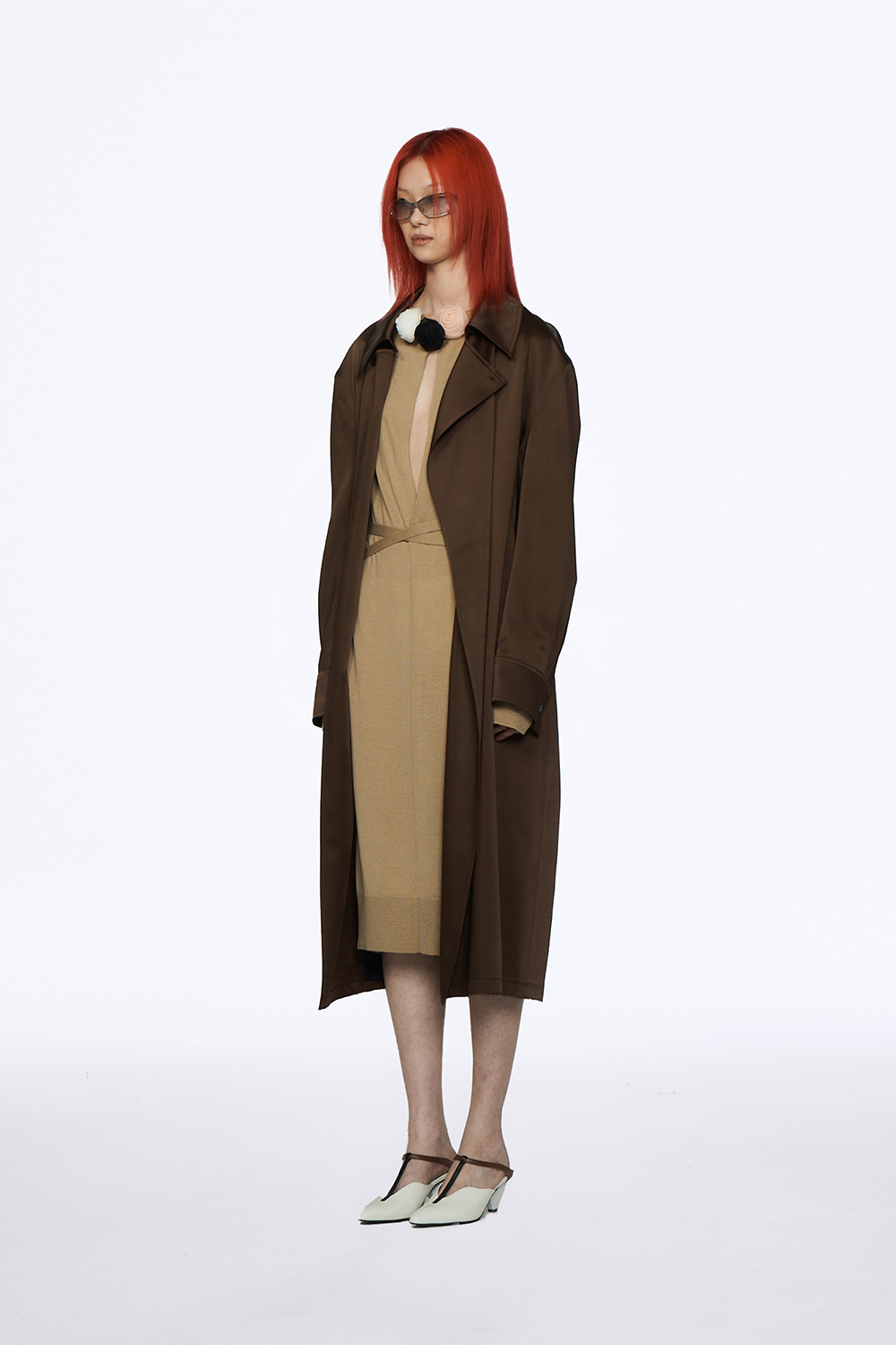 유지 오픈백 니트 드레스 카멜