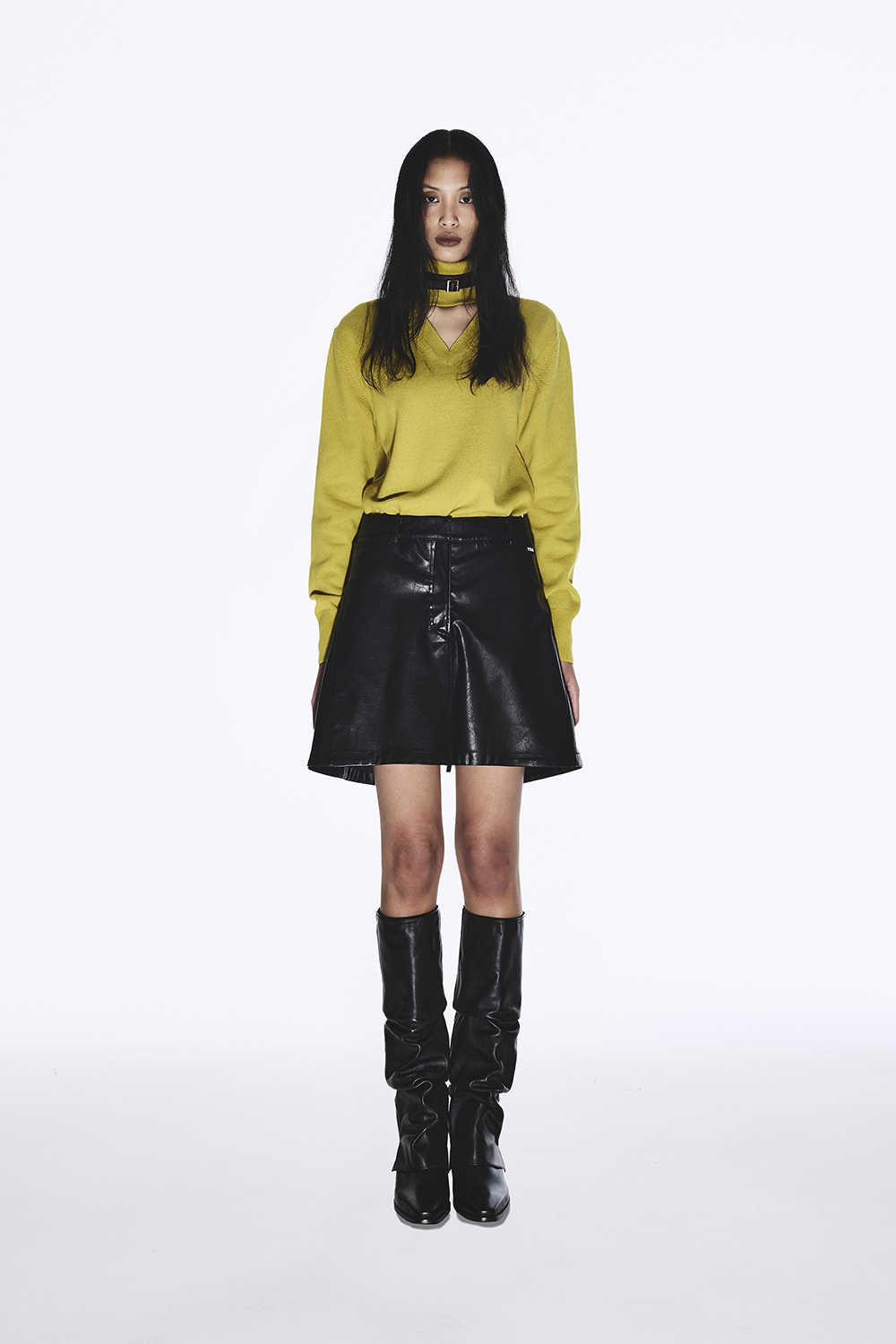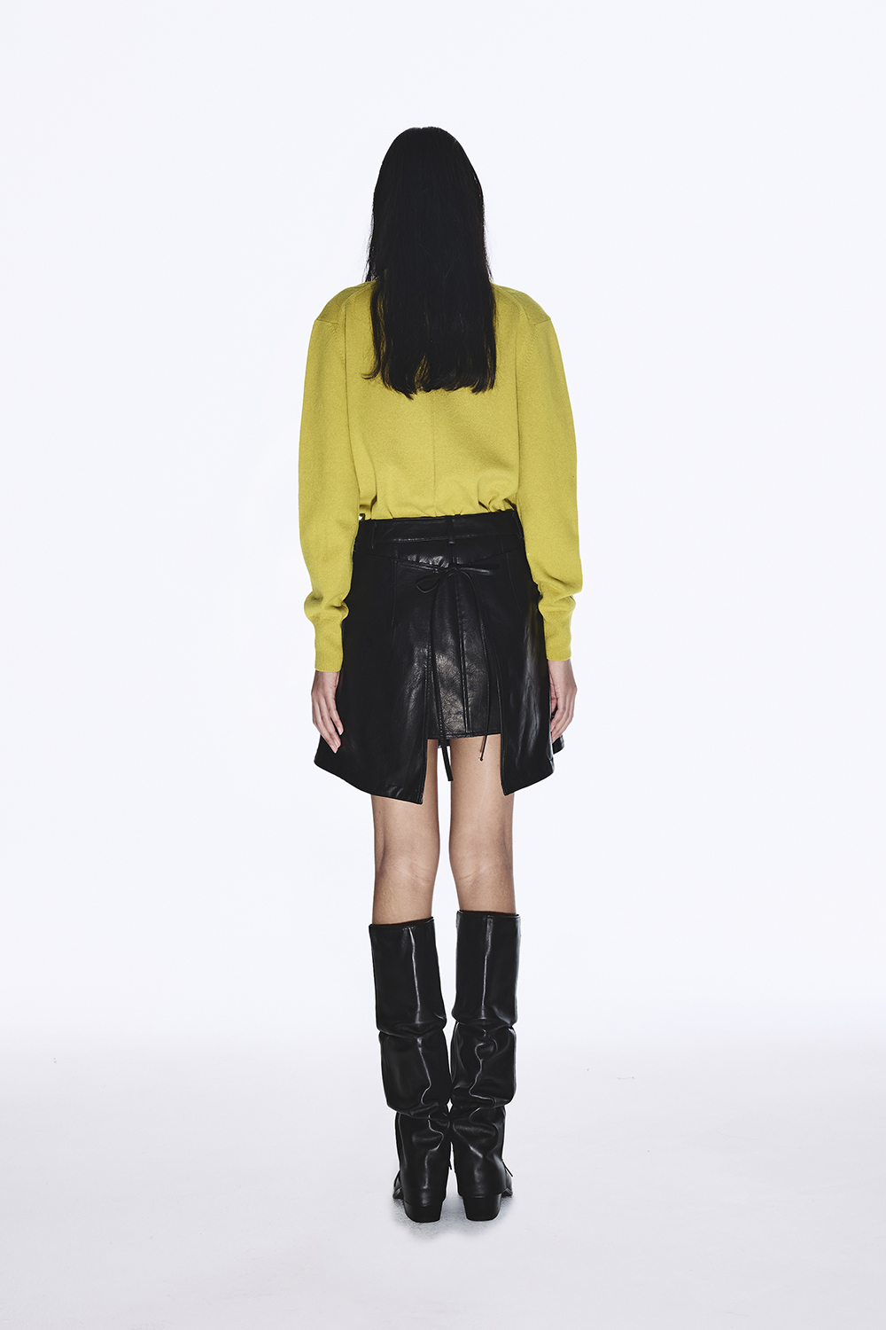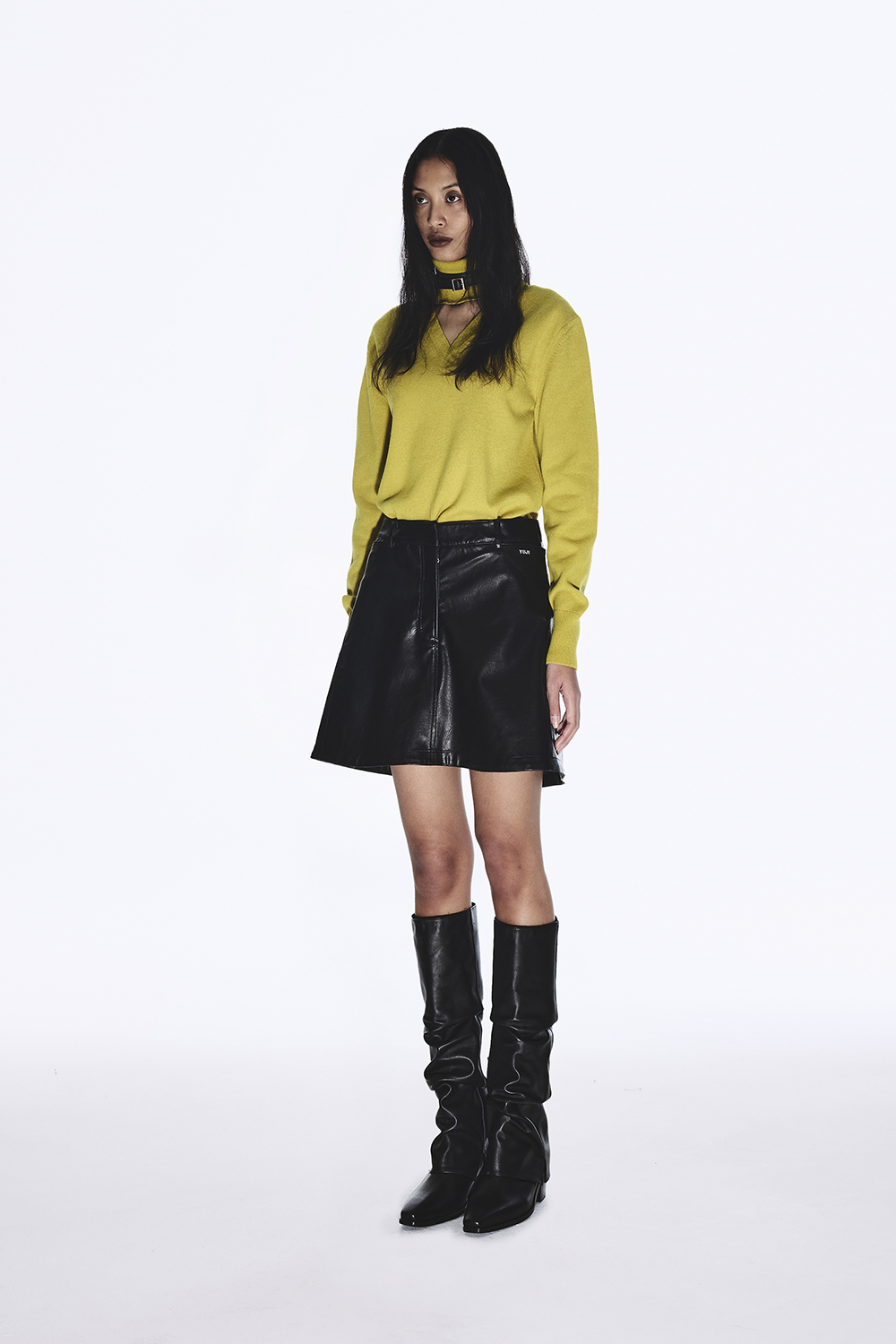 유지 레이어드 포 레더 스커트 블랙