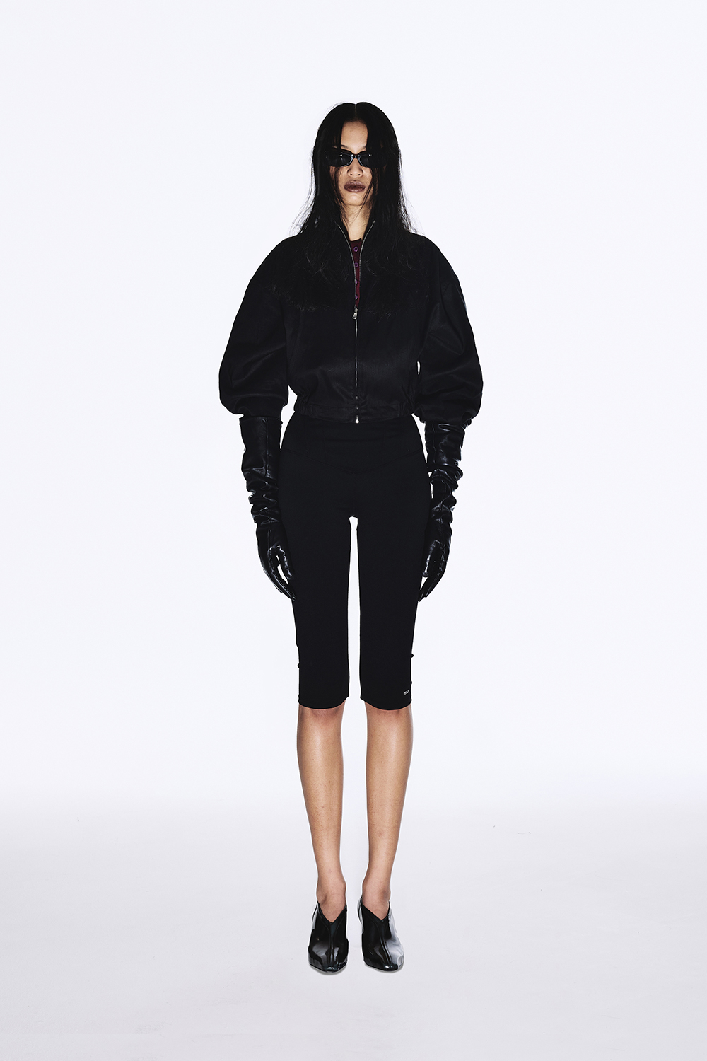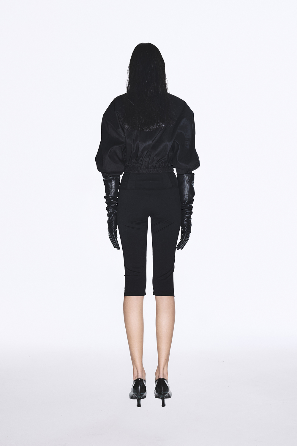 S SIZE / 허리 56cm 힙 76cm 허벅지 23cm 앞밑위 24cm 뒷밑위 33.5cm 밑단 14.5cm 총기장 61cm M SIZE / 허리 61cm 힙 81cm 허벅지 25.5cm 앞밑위 24.5cm 뒷밑위 34cm 밑단 17cm 총기장 61.5cm 모델 착용 사이즈 : S SIZE