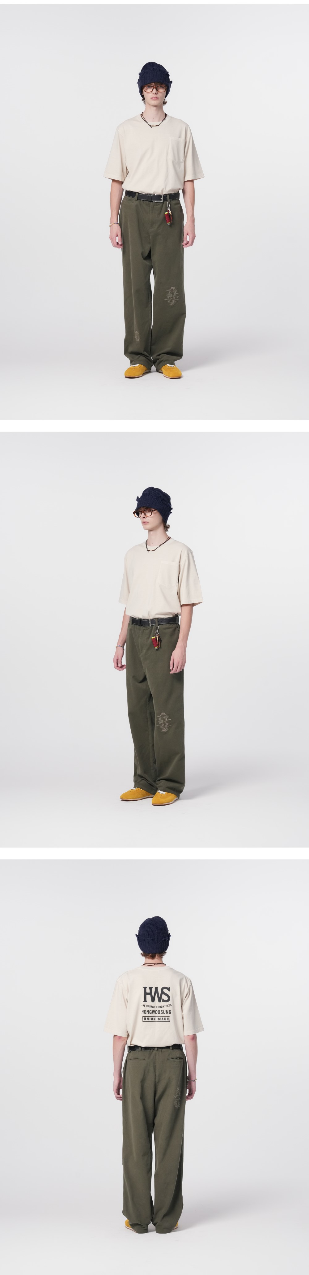 홍우성 워크웨어 리페어 치노 팬츠 딥 올리브