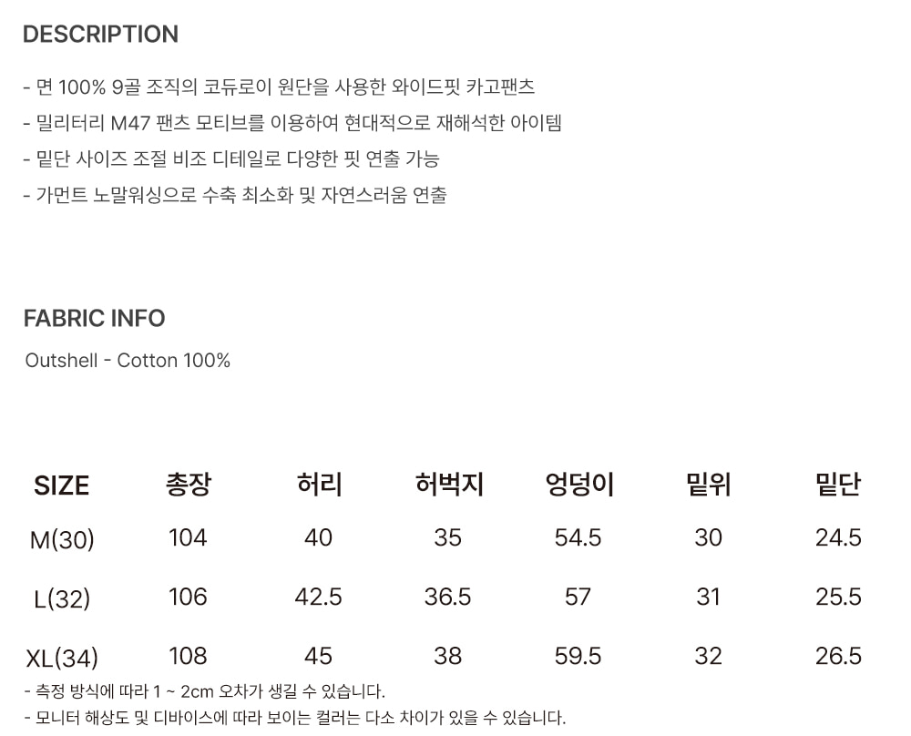 유니폼 브릿지 M47 코듀로이 팬츠 와이드 핏 레드
