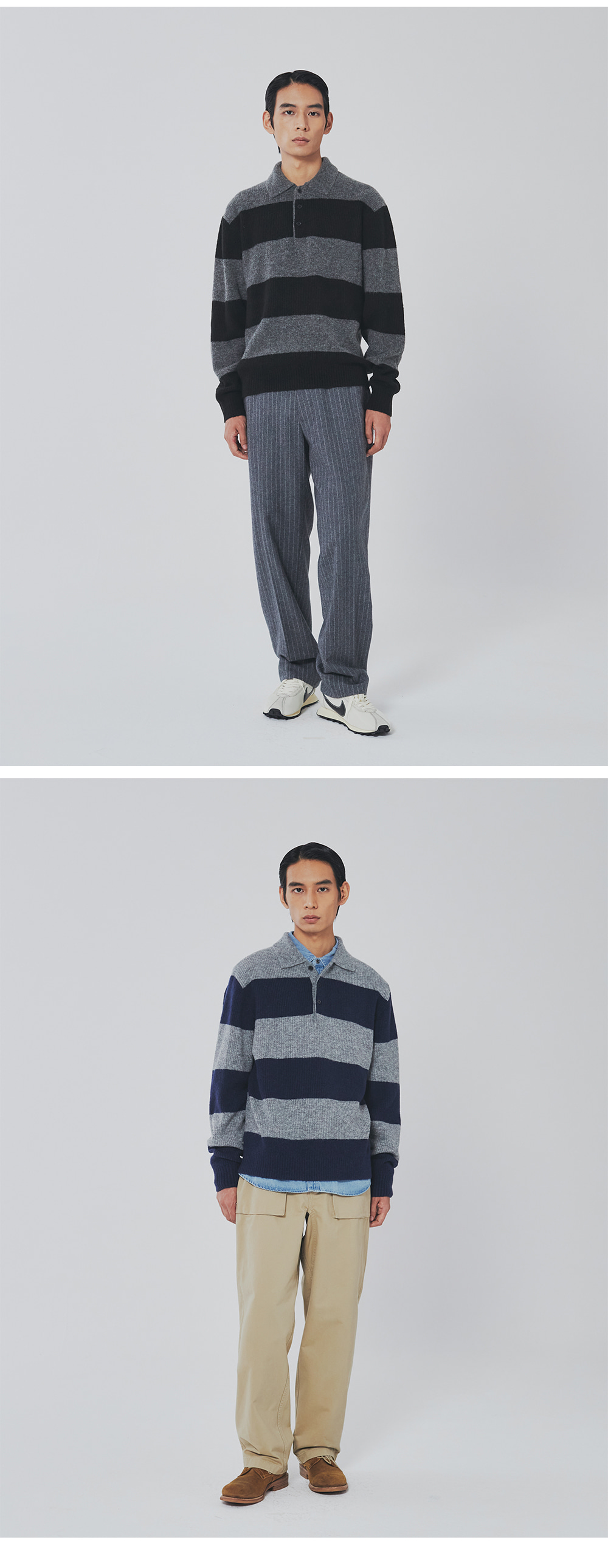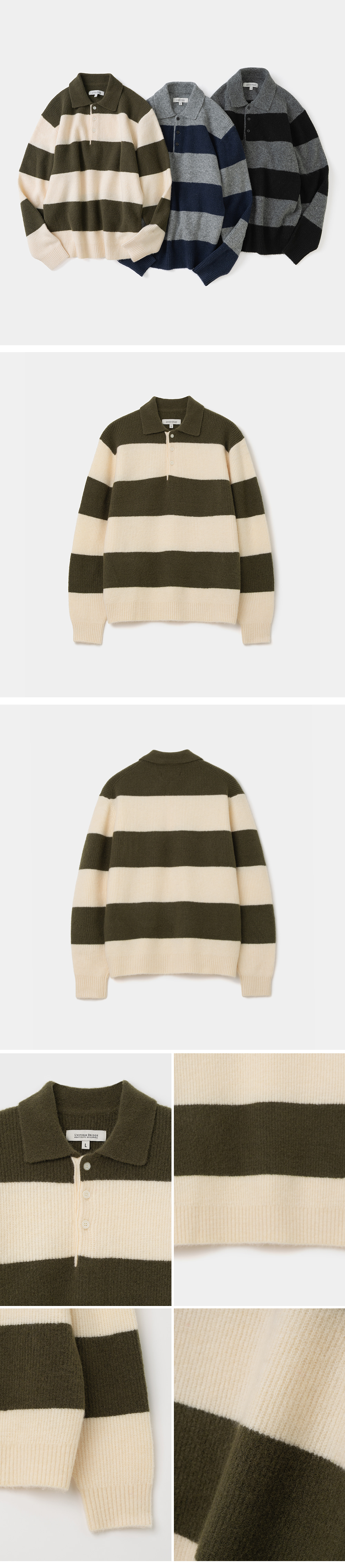 유니폼 브릿지 칼라 럭비 니트 올리브