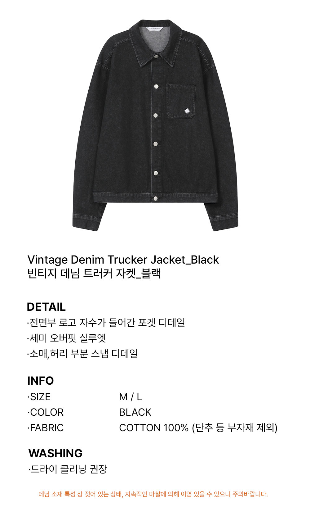 슬로우 레코드 하우스 빈티지 데님 트러커 자켓 블랙