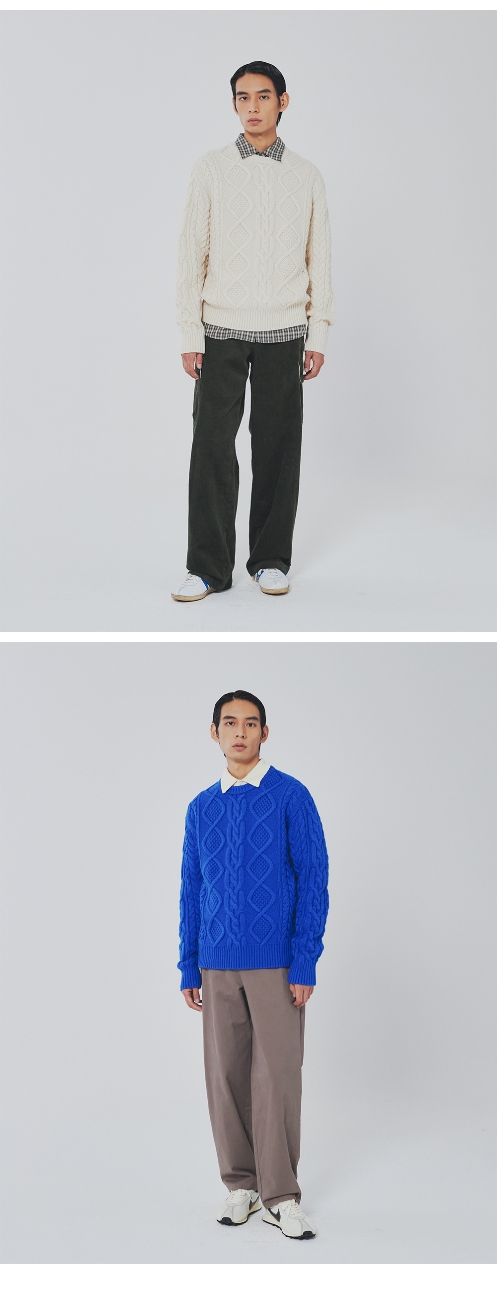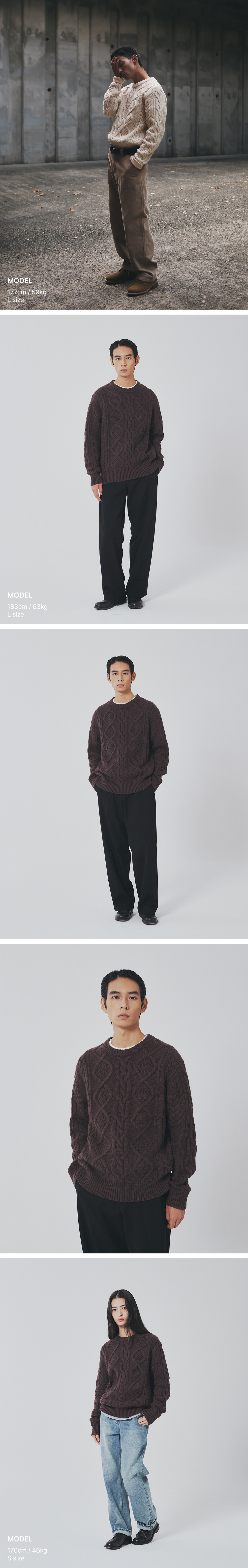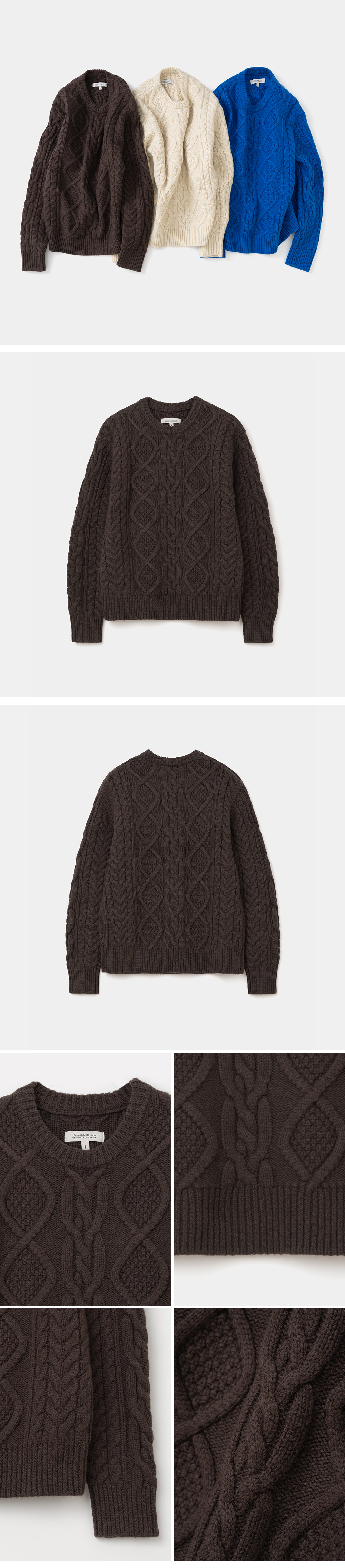 유니폼 브릿지 케이블 크루 넥 니트 브라운