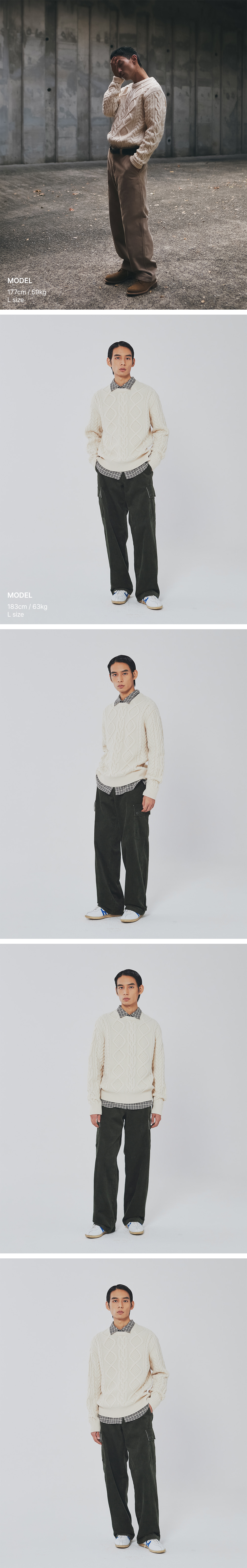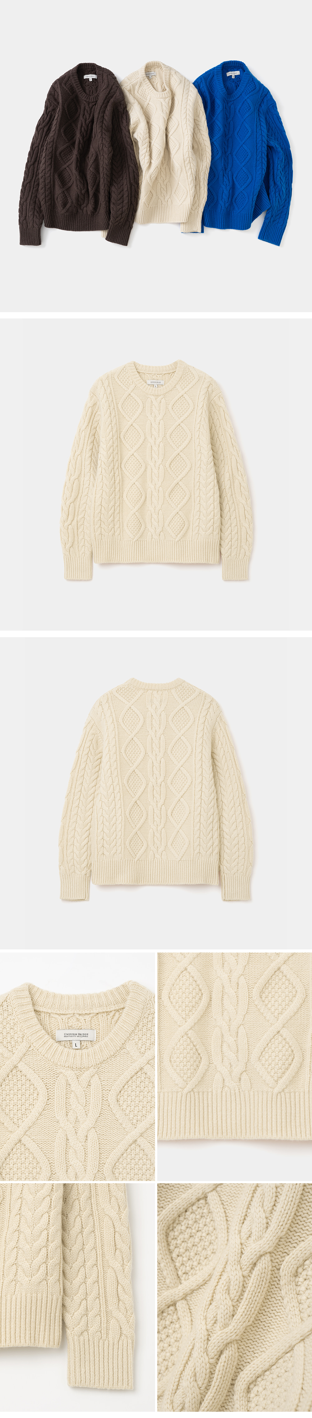 유니폼 브릿지 케이블 크루 넥 니트 아이보리