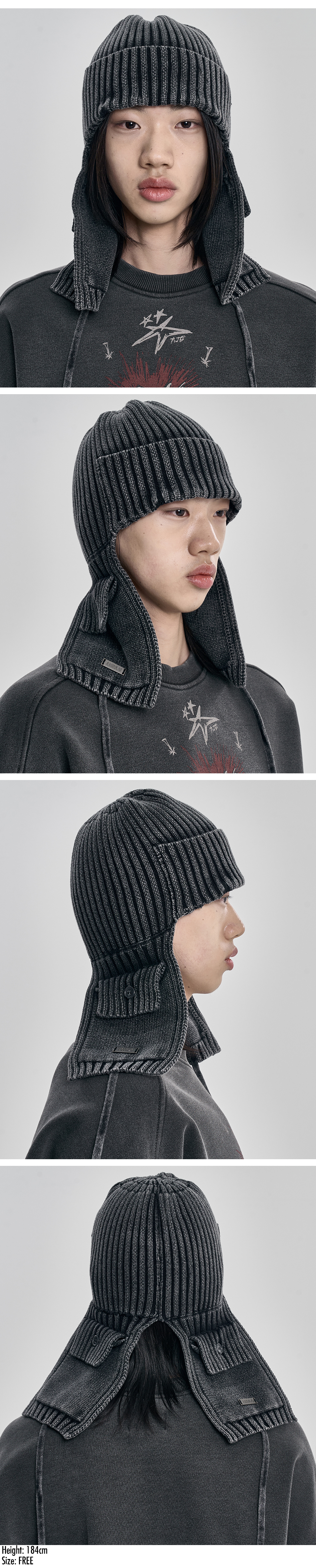 AJOBYAJO Washed Knit Trooper Hat Charcoal