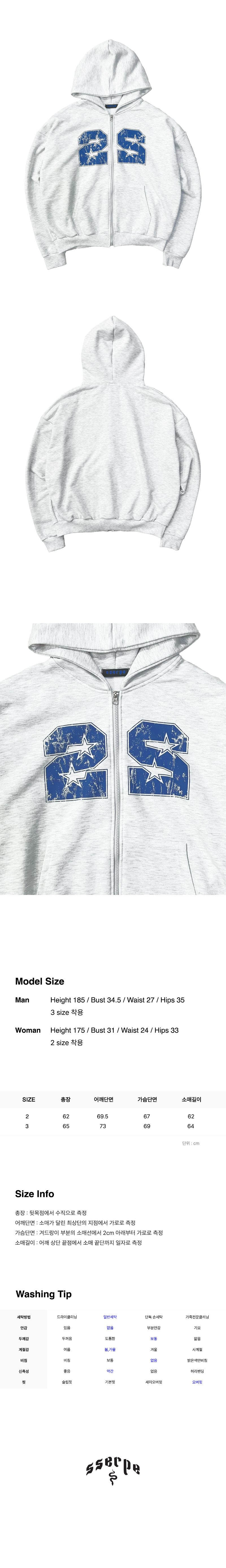 빈티지한 그래픽과 세미 크롭 기장으로 성별에 관계없이 데일리로 입기 좋은 후드집업입니다.
