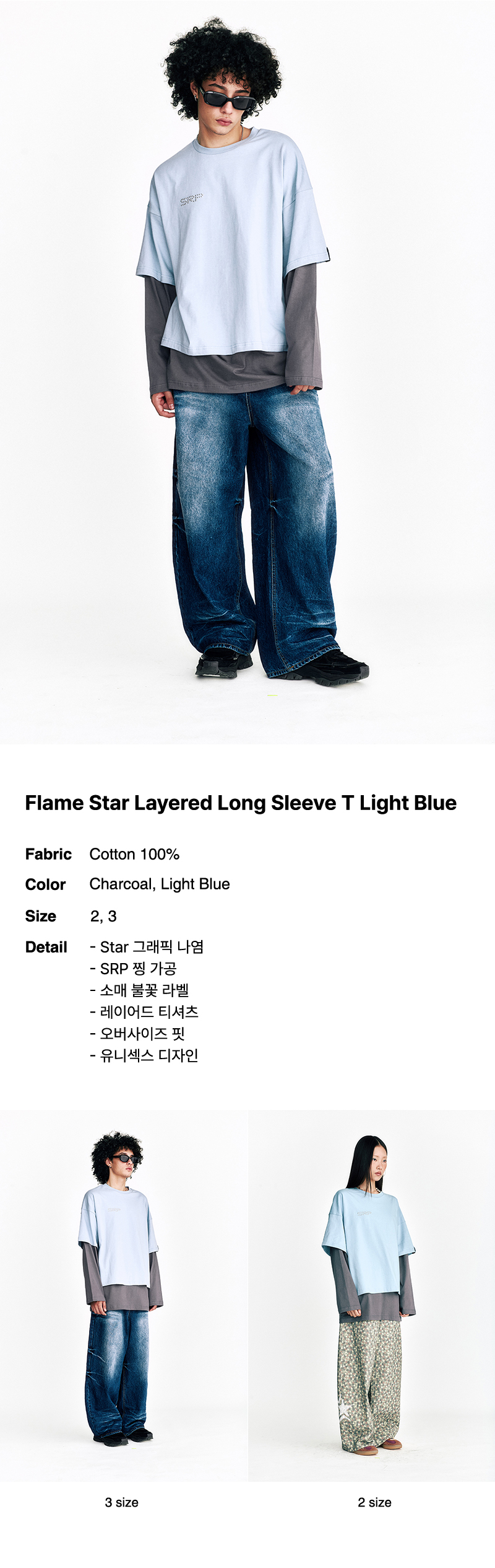 쎄르페 플레임 스타 레이어드 긴팔 티셔츠 라이트 블루