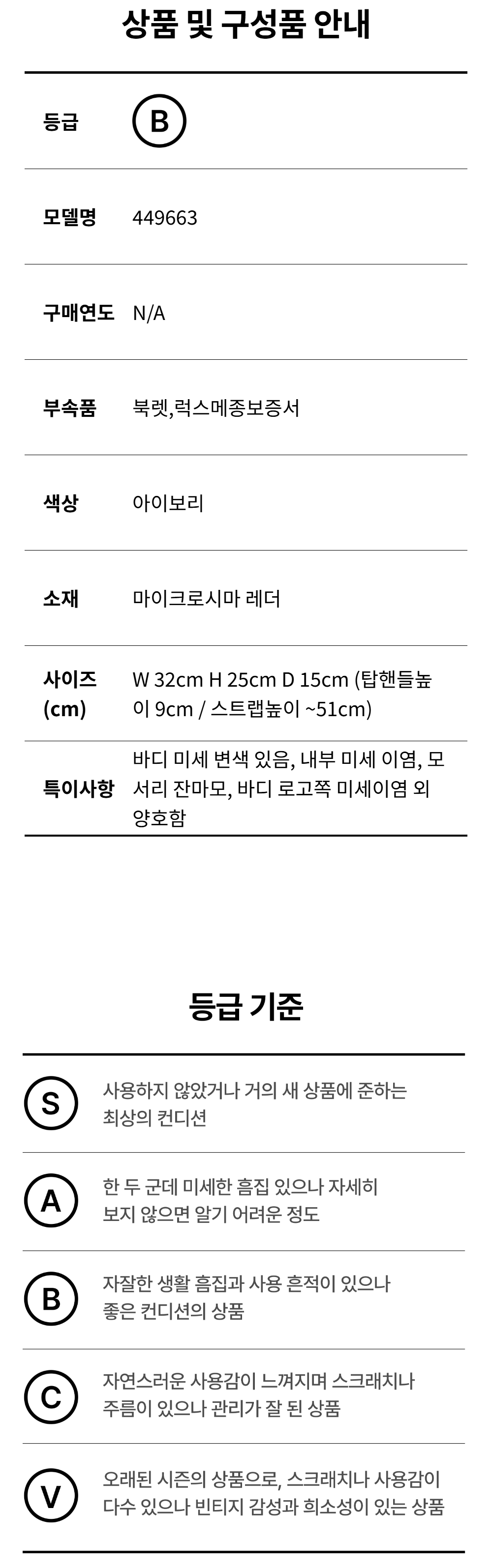 구찌 449663 아이보리 마이크로시마 미디움 돔 토트백, 스트랩