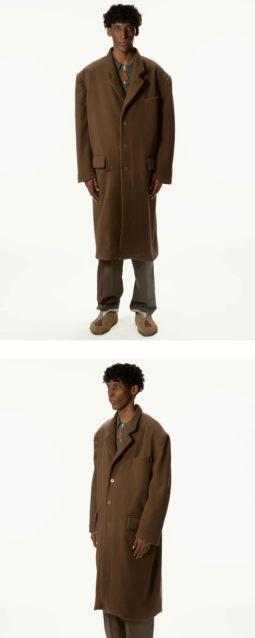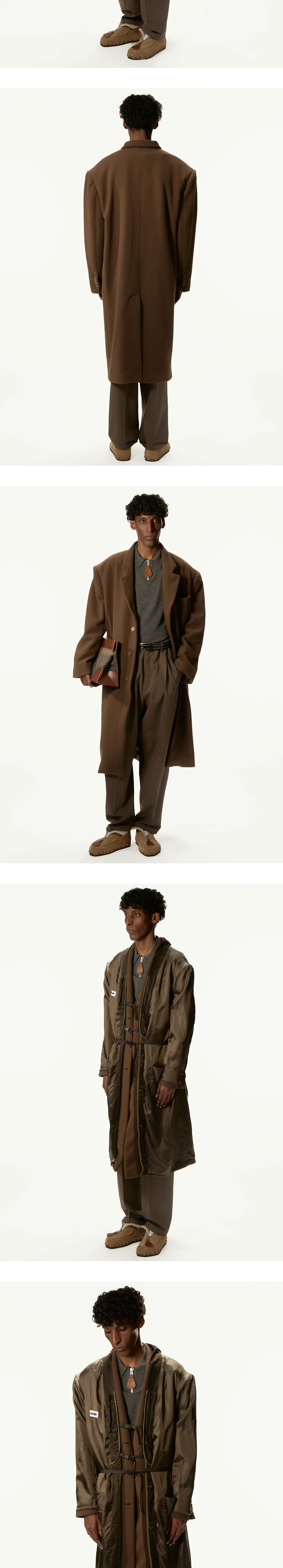 마리아노 폴레조 코트 브라운입니다. - 리버시블 플리스 코트 - 싱글 브레스트 - 배색 버튼 & 버클 여밈 - 라펠 카라 - 비스코스 안감