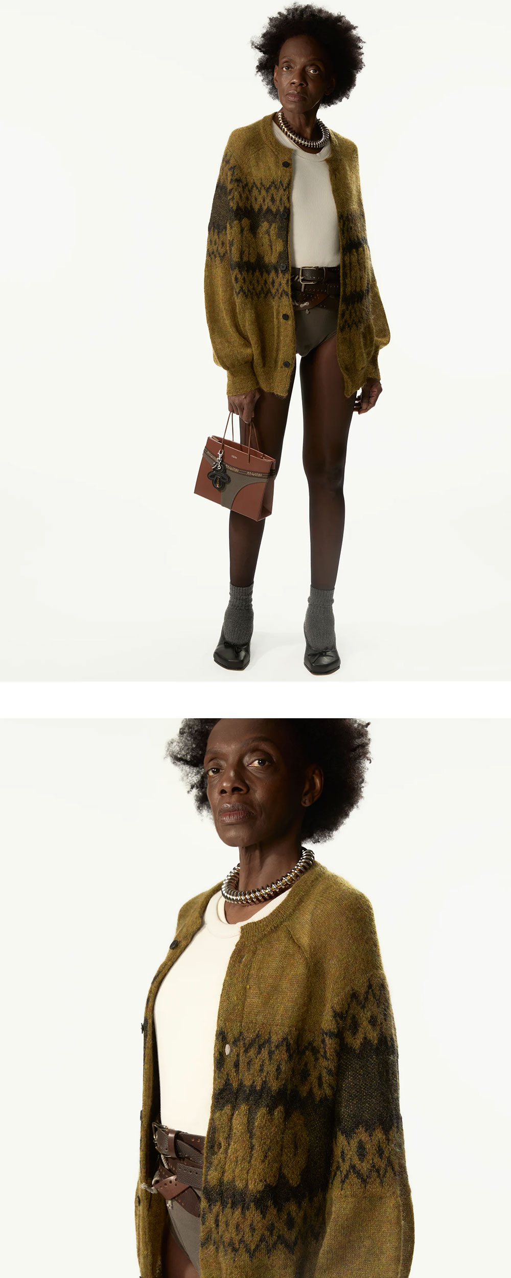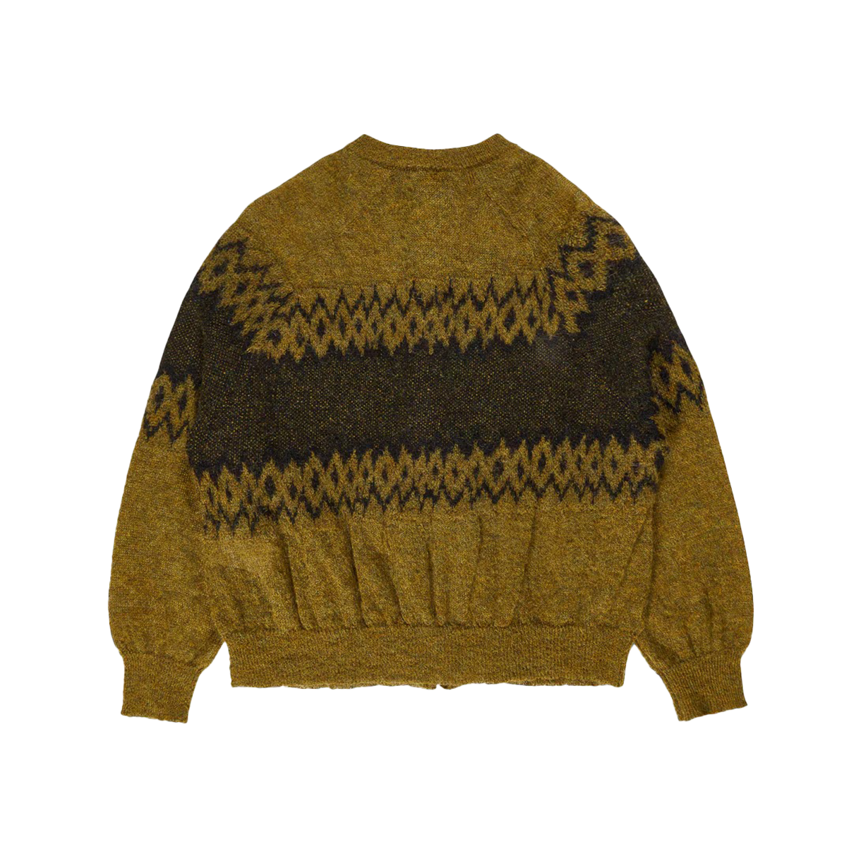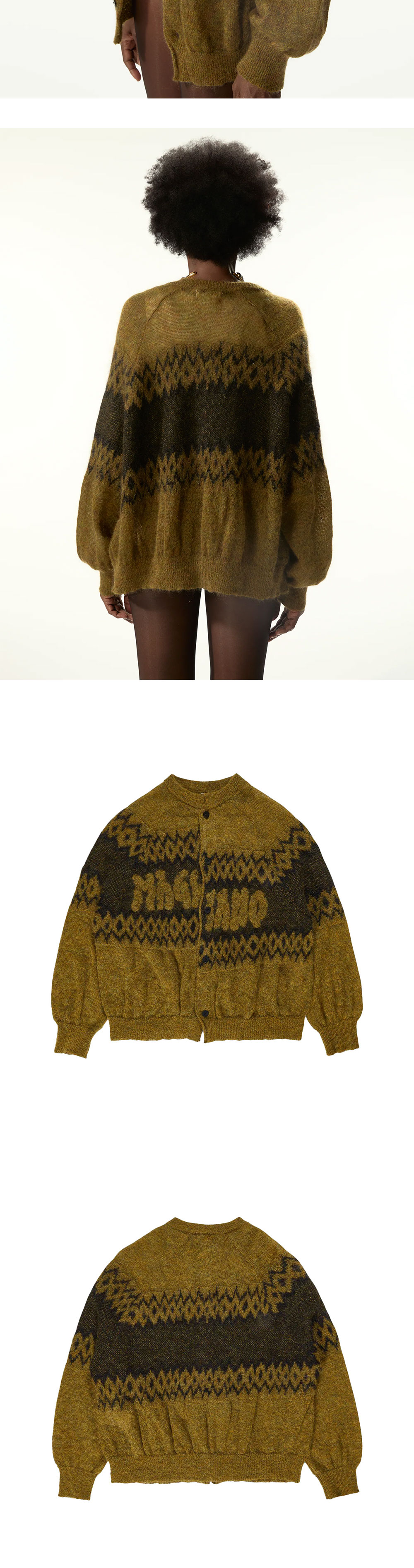 마리아노 크리스마스 스웨터 레이브 옐로우입니다. - 모헤어 니트 스웨터 - 오버사이즈 루즈핏 실루엣 - 언밸런스 로고 자카드 - 빈티지 크리스마스 모티프 패턴